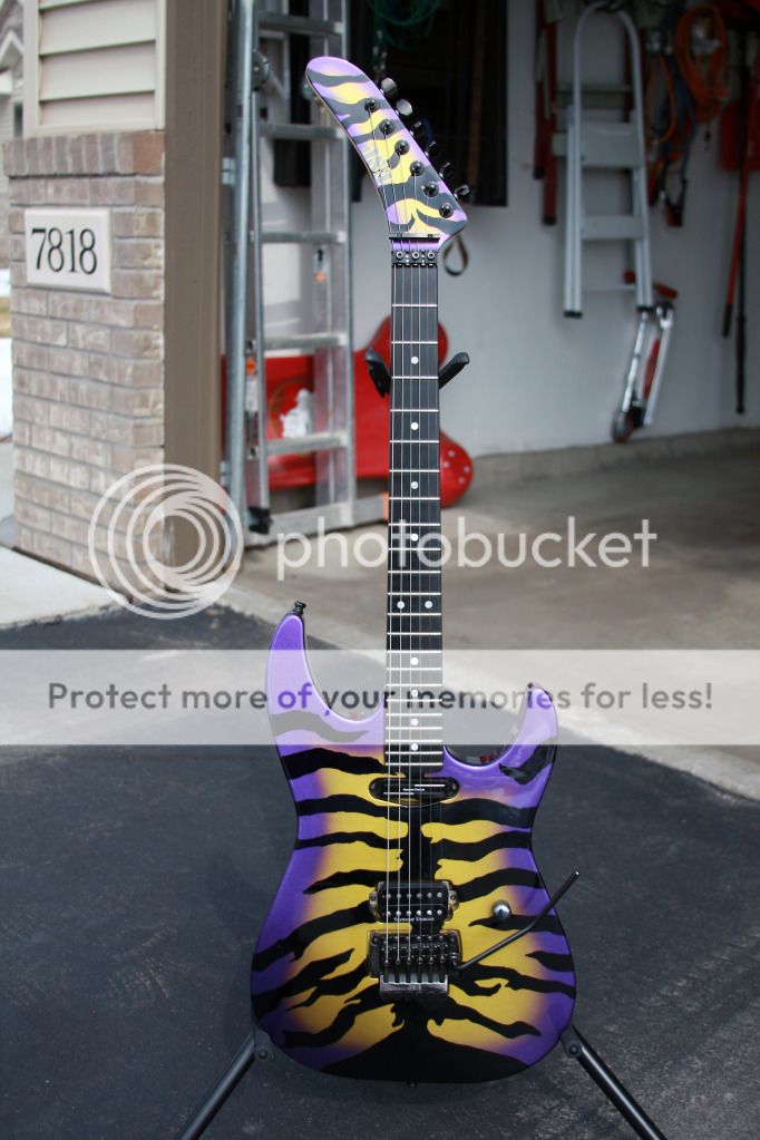 I'm no expert on ESP - I got it in 1990, and while it's a Mirage Custom, as I recall the custom really just meant neck-thru, rather than custom ordered. There's a few of the graffiti graphic around (mostly over black), notably Michael Wilton had that graphic on a bolt-on. Here're a couple of (marginally) better pics: