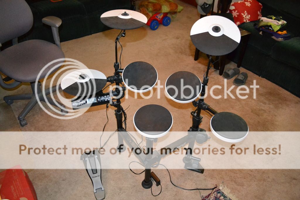 Here is a slightly used set of Roland drums for sale . This set is perfect for a beginners start up set or for the pro looking for a compact set to easily carry to gigs . Roland is the top of the line in electronic drums ask anyone who knows and they will tell you . The least expensive Rolands are better than the top of the line in any other brand of electronic drums .