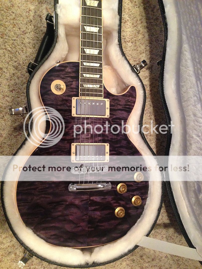 Well the guitar came yesterday. I excitedly rip open the box and pop the case only to see a PURPLE Les Paul staring back at me. Not what I was expecting.