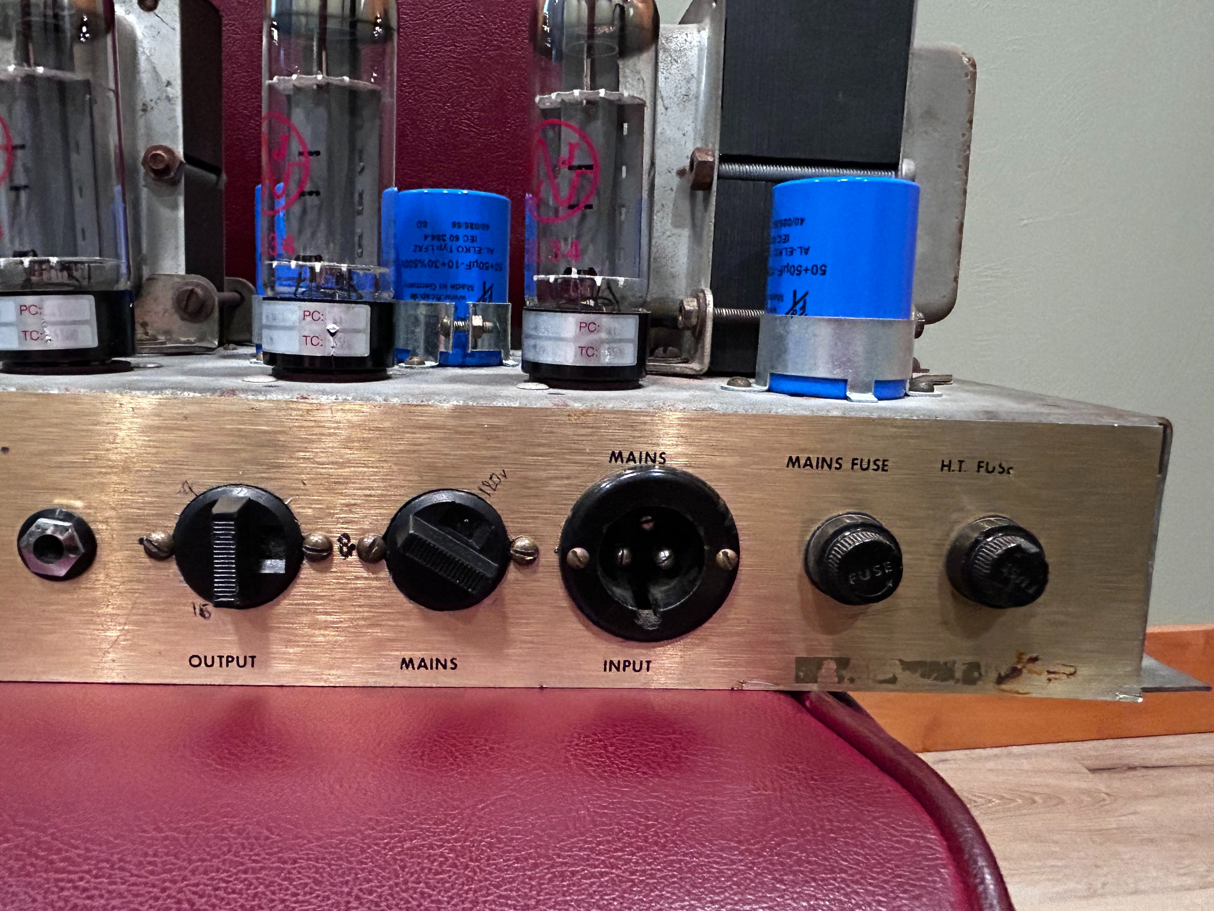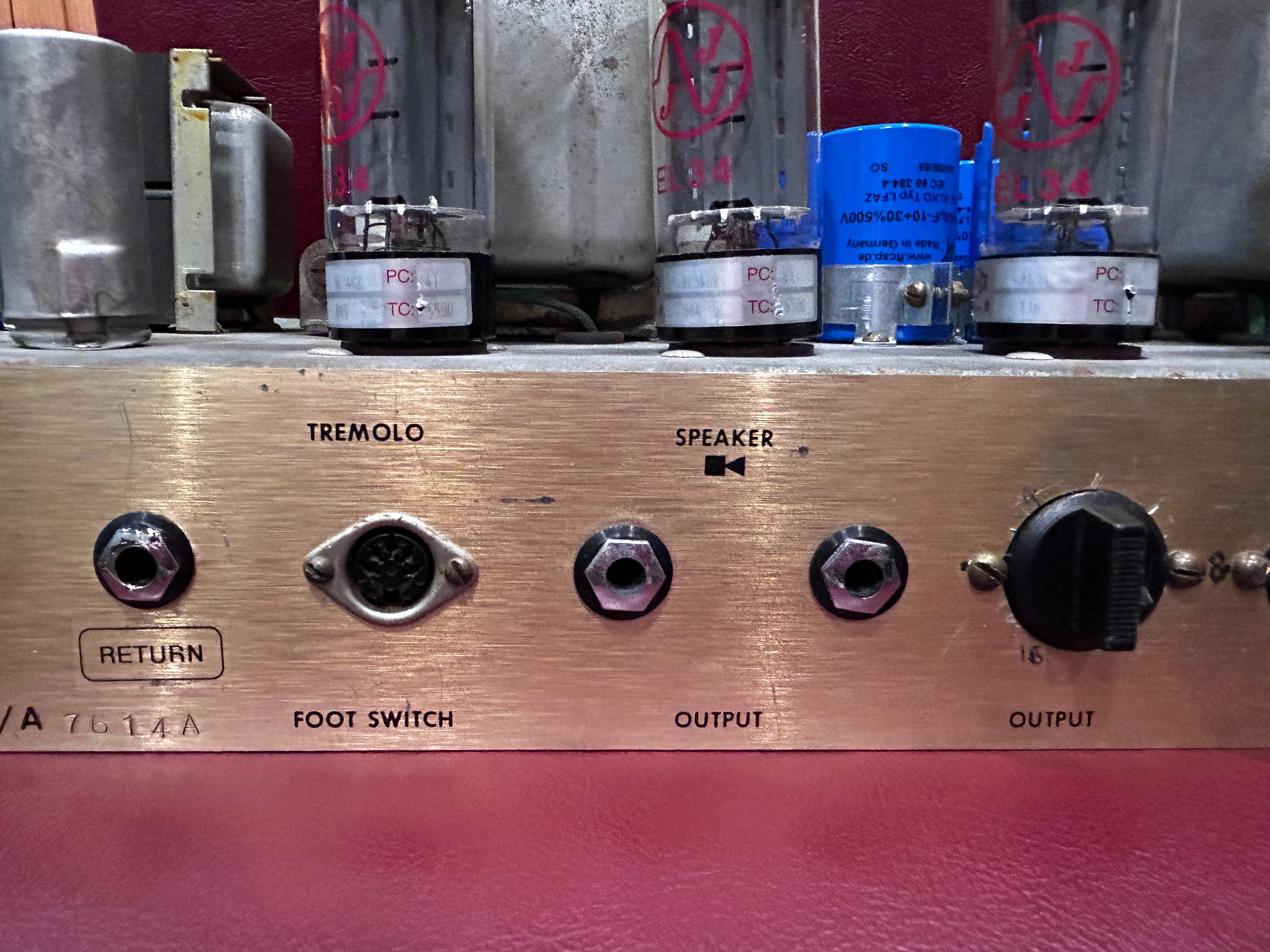 The amp has original output transformer but the power tranny was replaced at some point with a Mercury Magnetics (see pics for model). Will ship with power cord, JJ EL34 power tubes and (2) EH 12ax7, (1) JJ 12ax7, and a Sovtek LPS. The power on indicator lamp unfortunately has a mind of its own and is on/off intermittently.