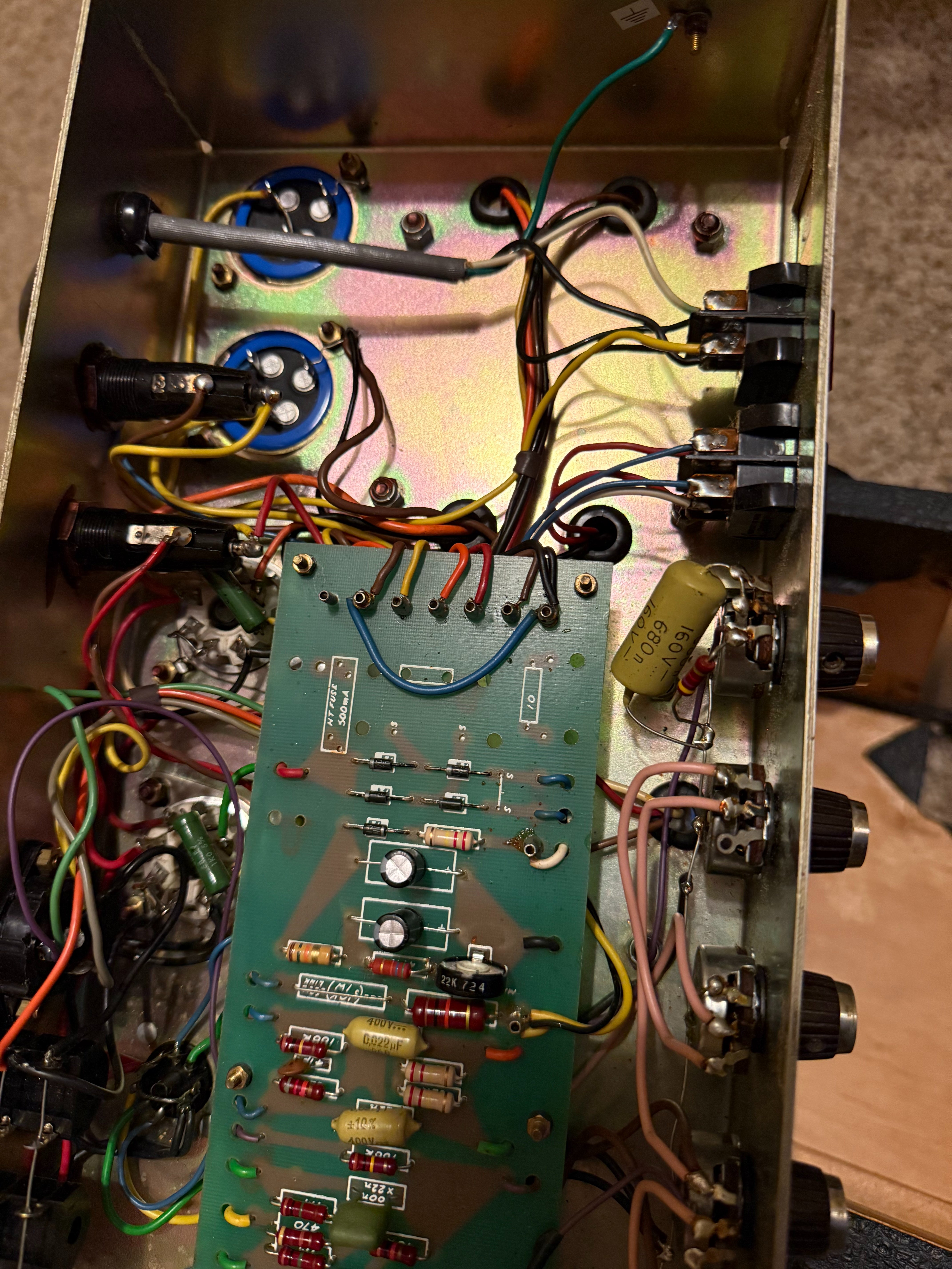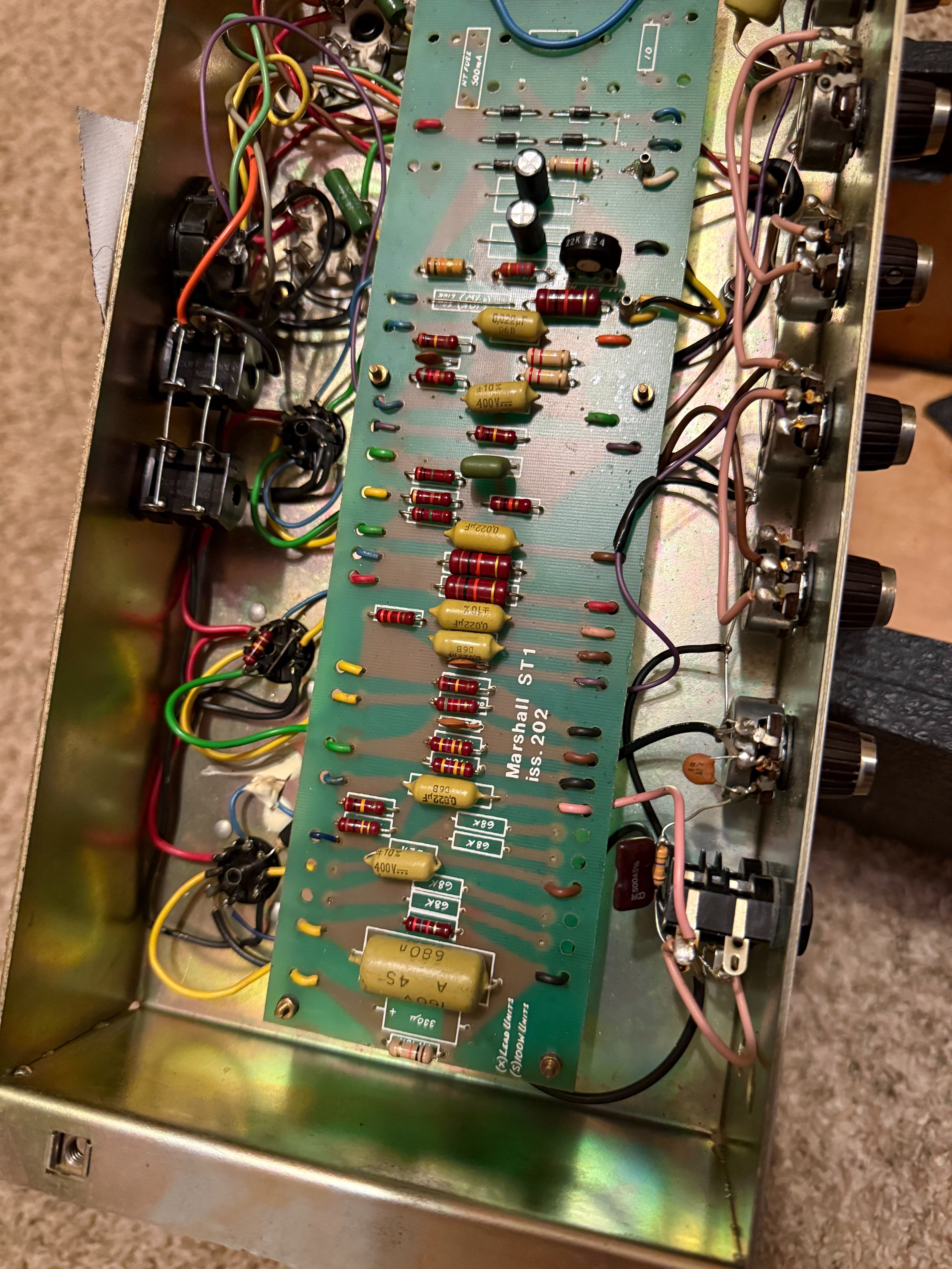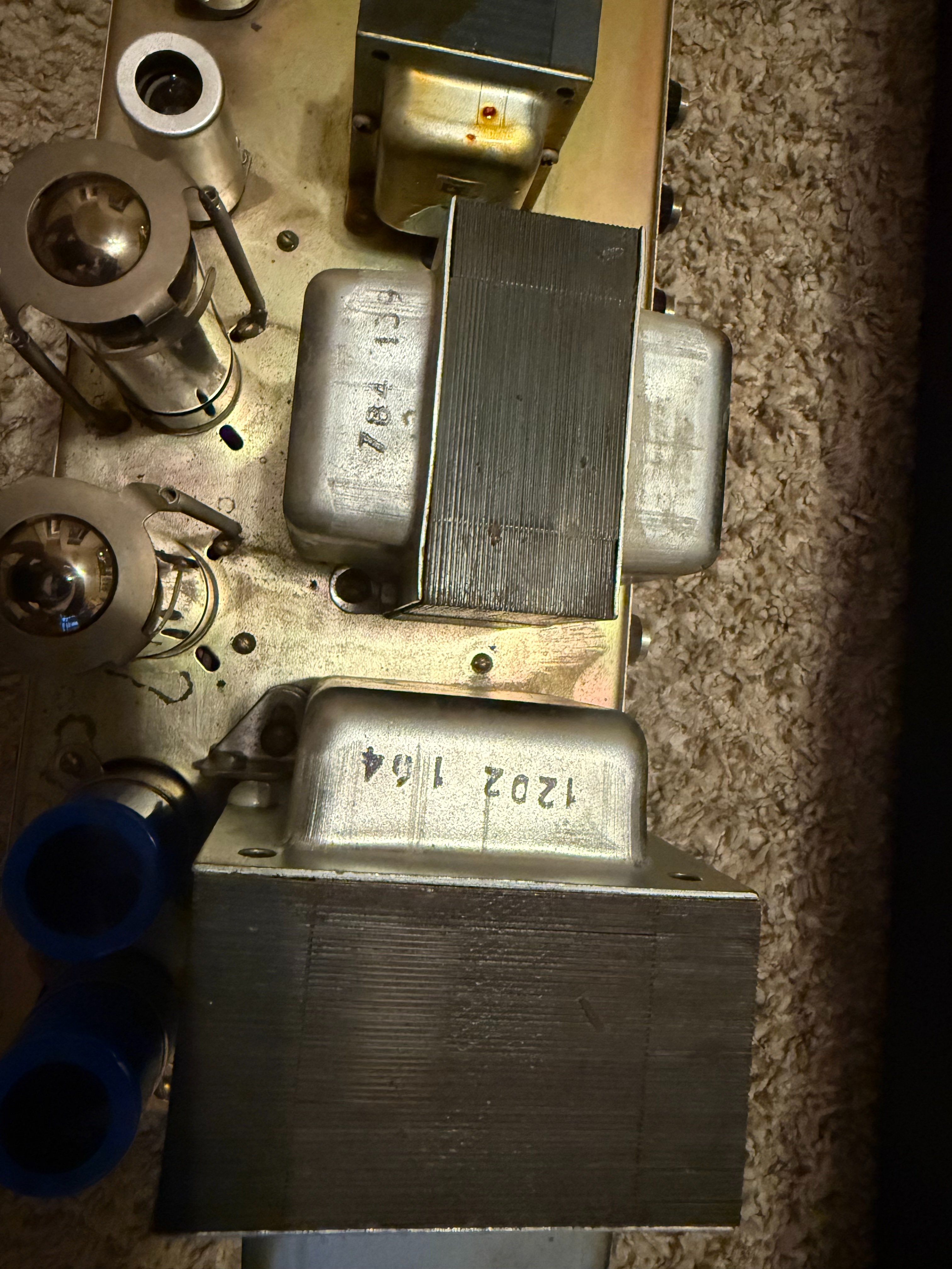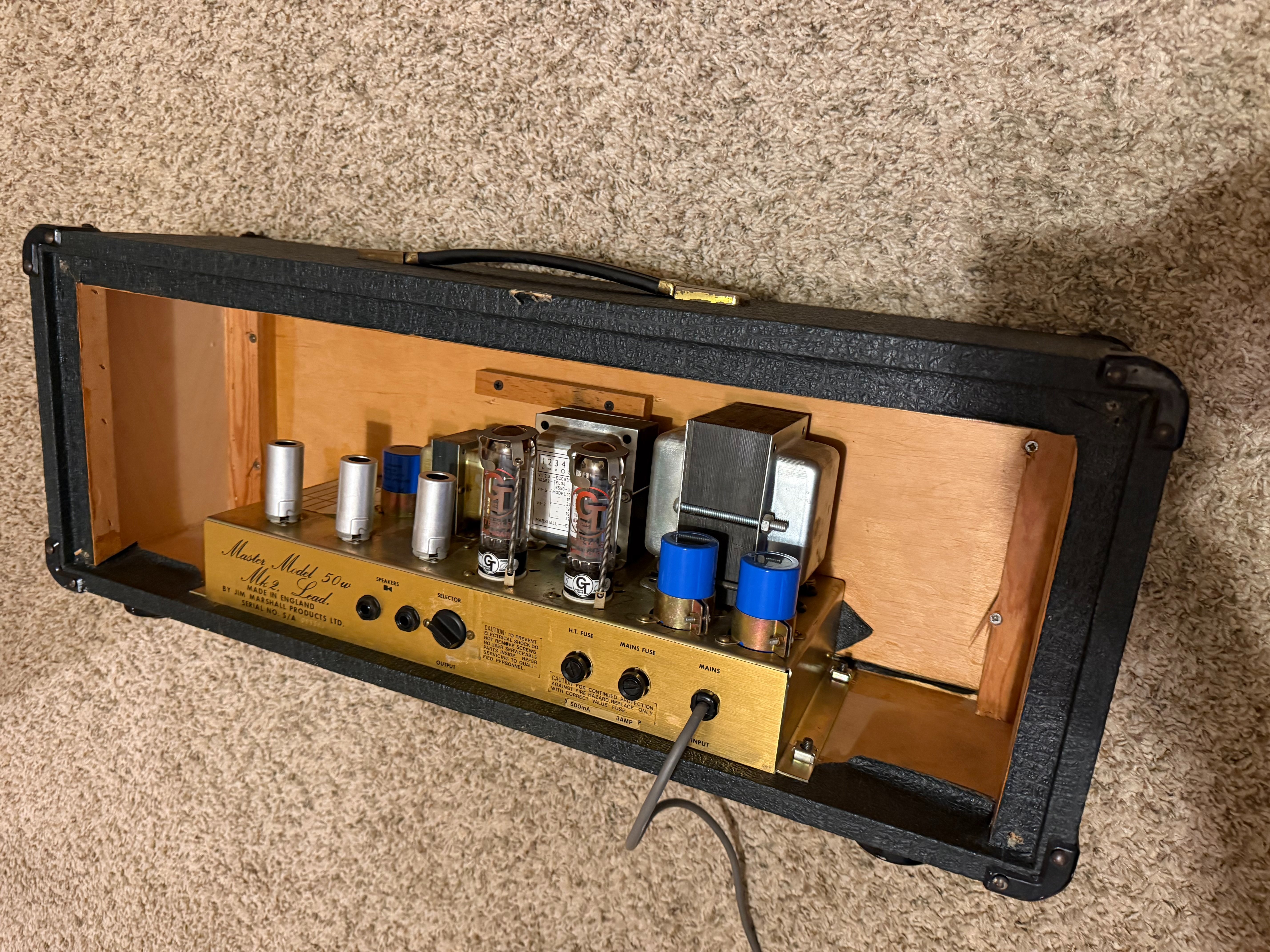 Gotta thin the herd, so no trades on this one. Very clean, no mods, no drilled chassis, original iron, all original other than recent recap (F&Ts) and I believe a long ago EL34 conversion. Clean bill of health from esteemed local amp tech, Lowell Hunt. She sounds totally awesome and looks pretty cool too. Rear panel included, just removed it for the photos.
