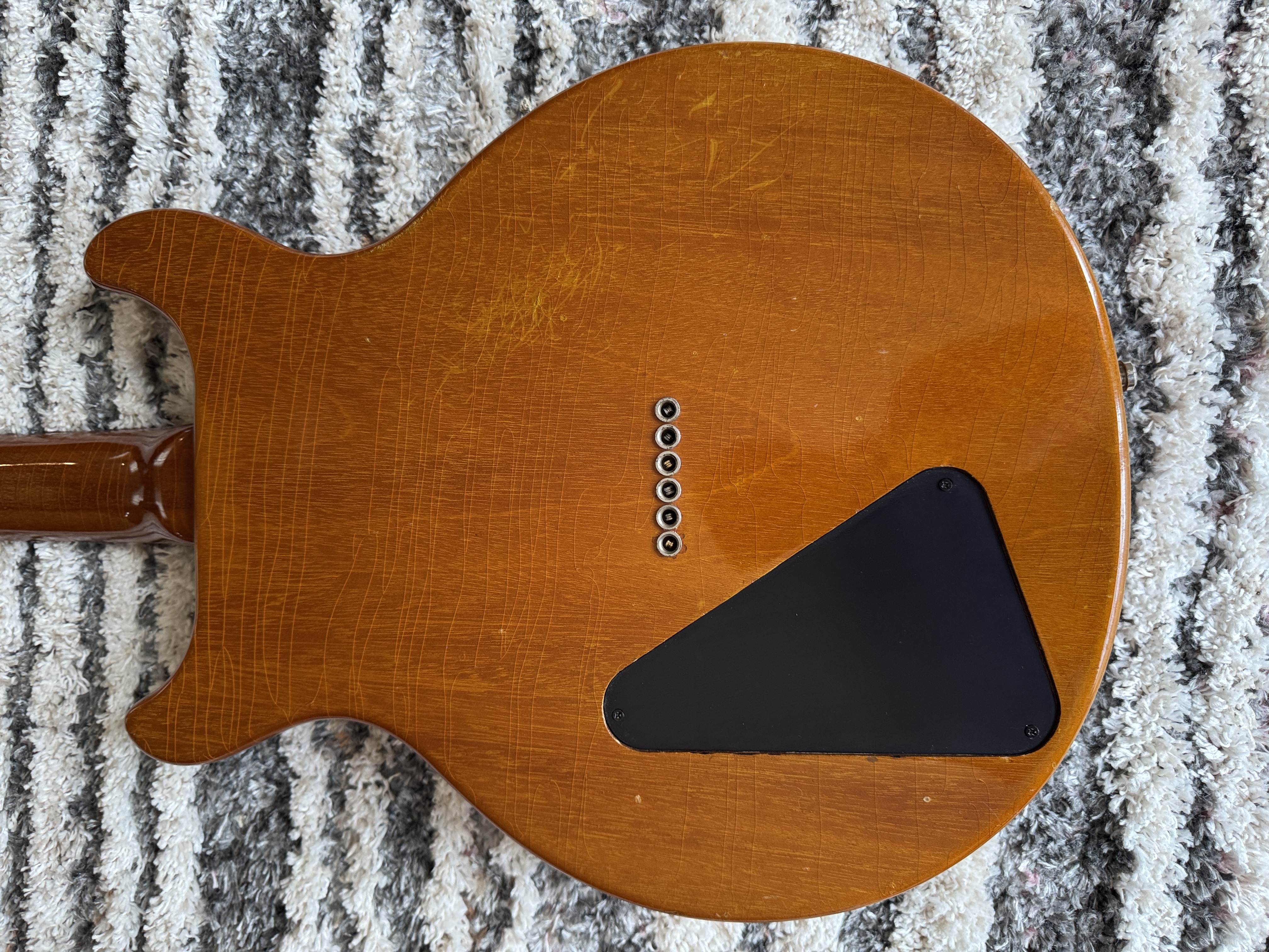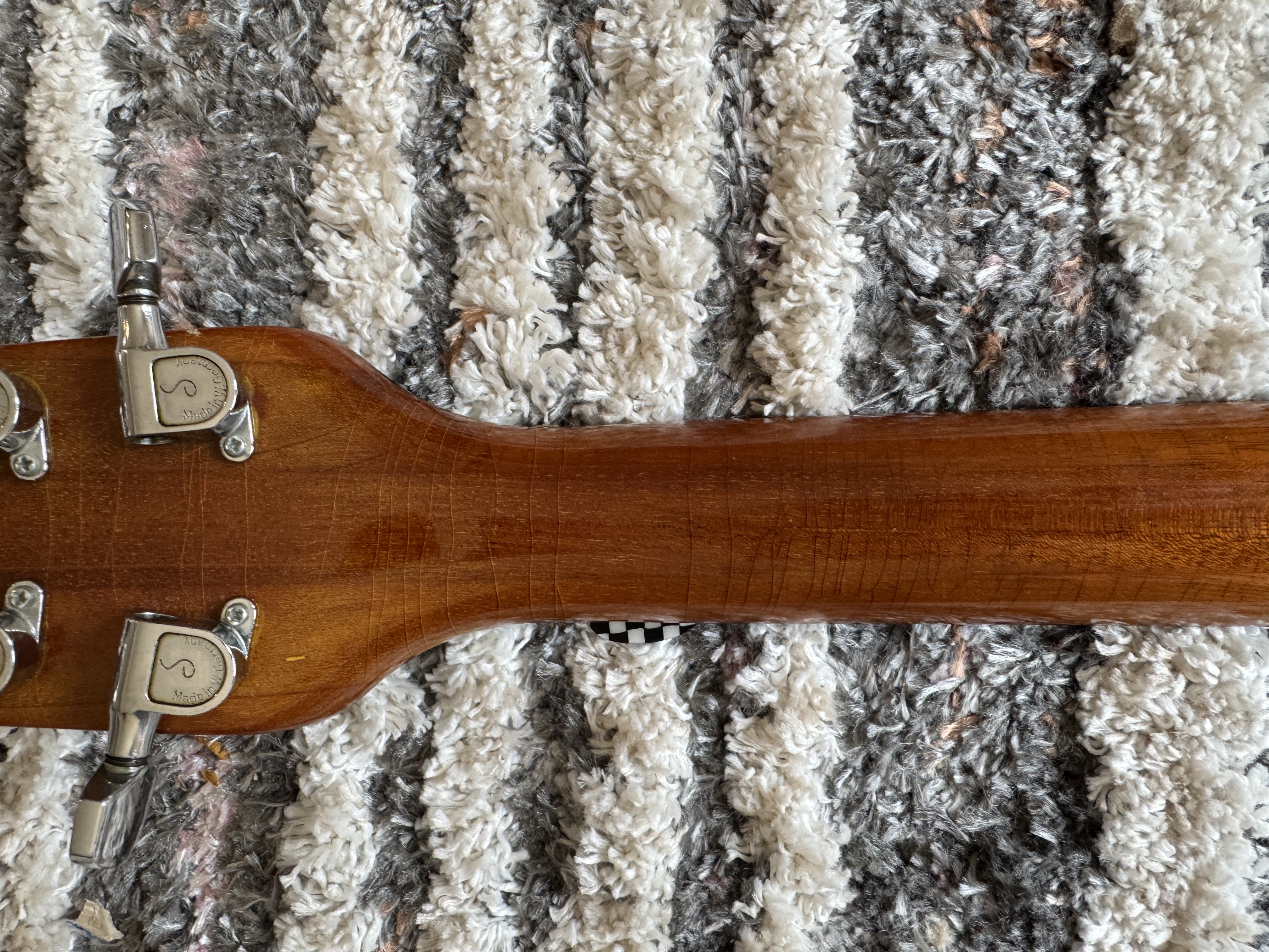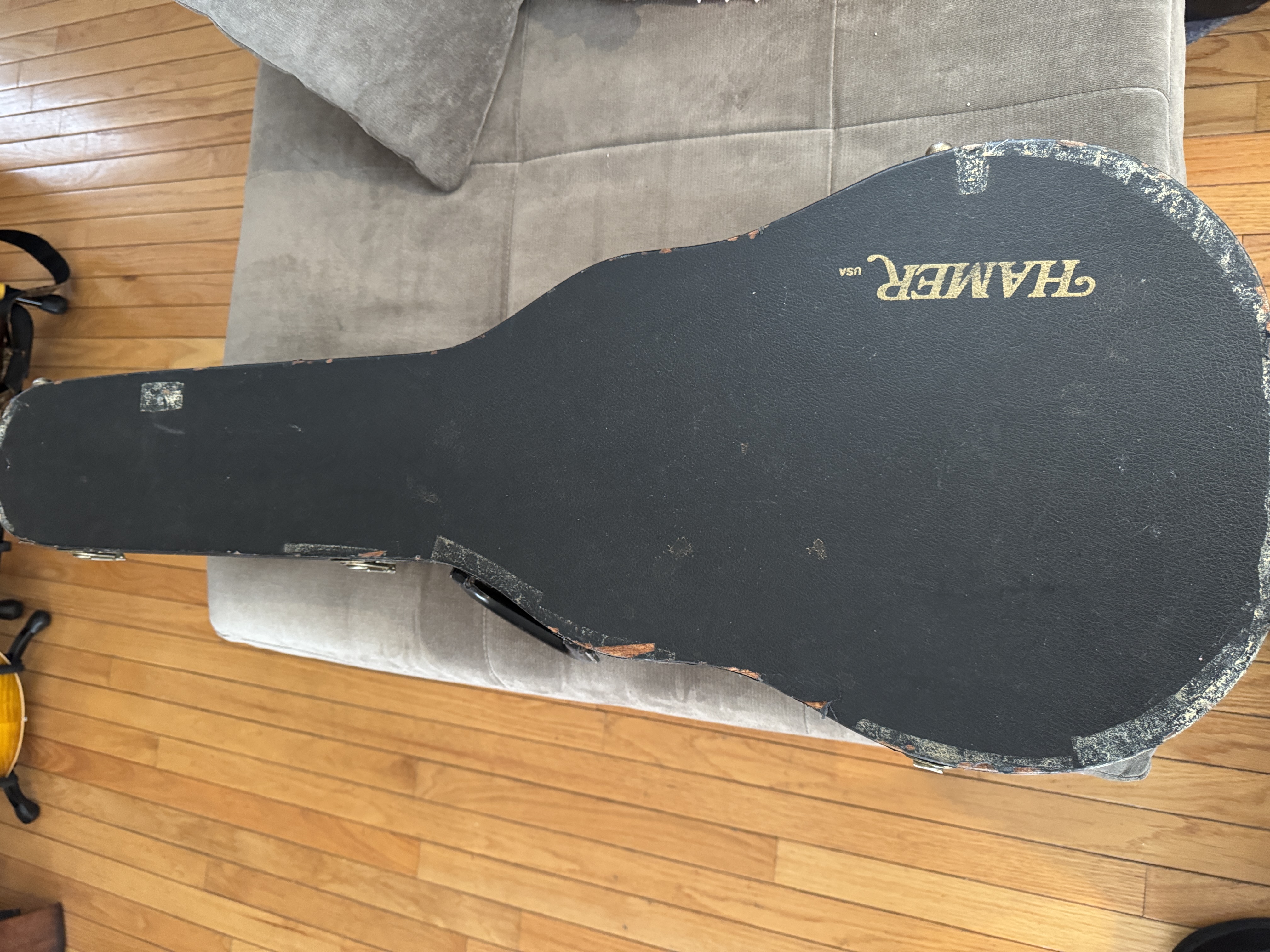 There is the usual wear on the back and sides including slight buckle rash and few superficial nicks (see photos). The body has finish-checking which is difficult to show in pictures. The case has wear along the top and bottom edges. Fret and nut wear are minimal.