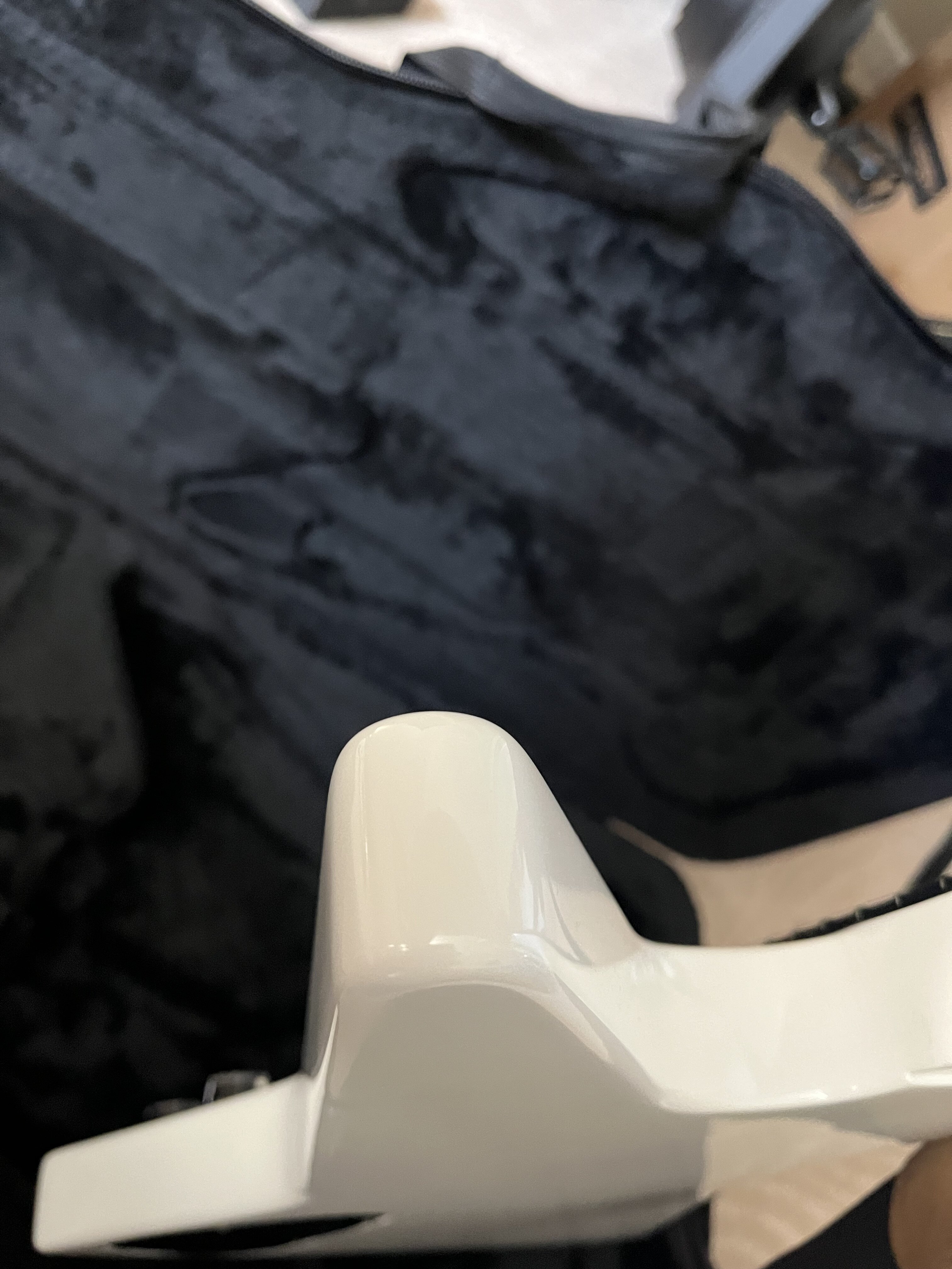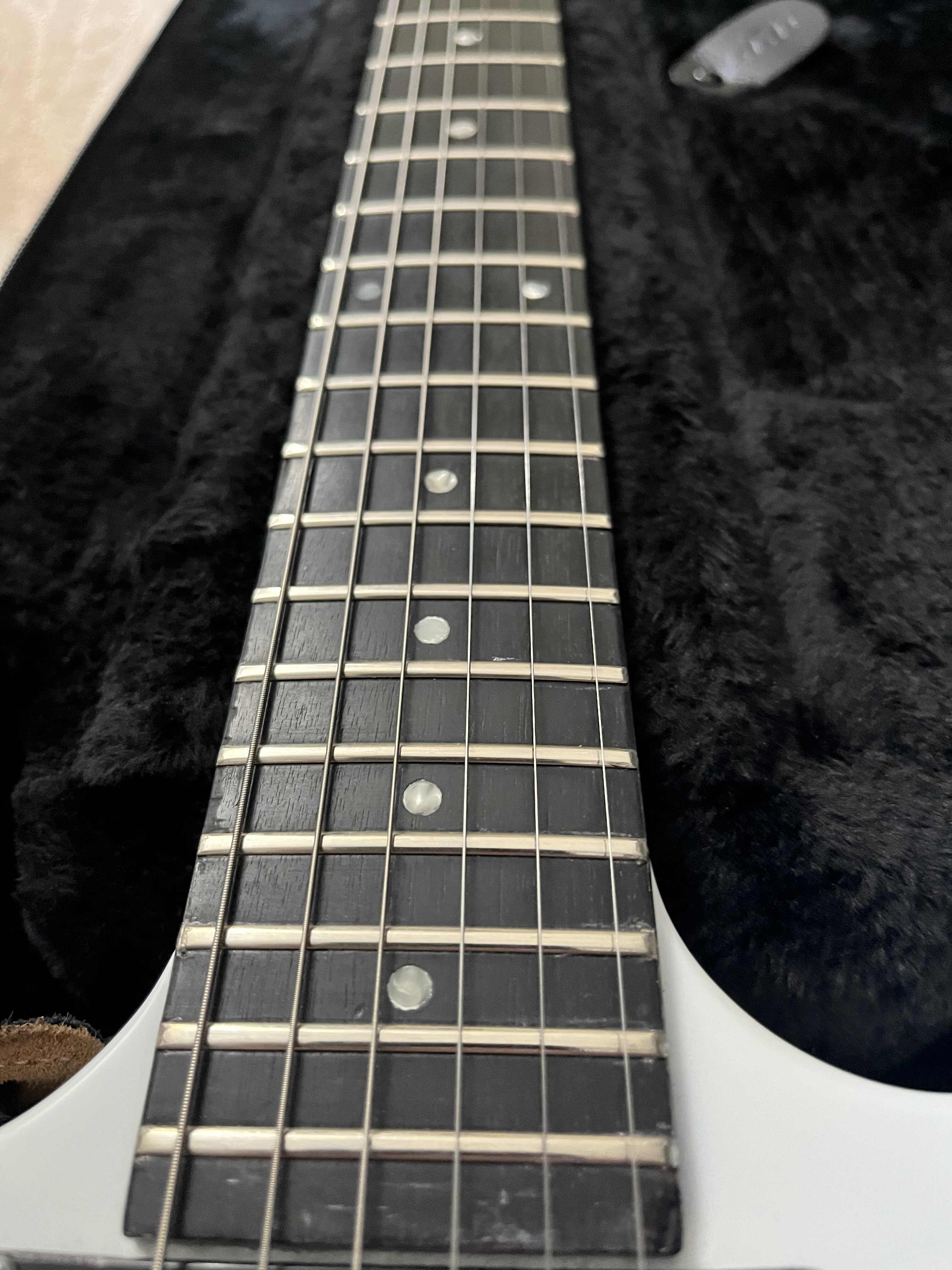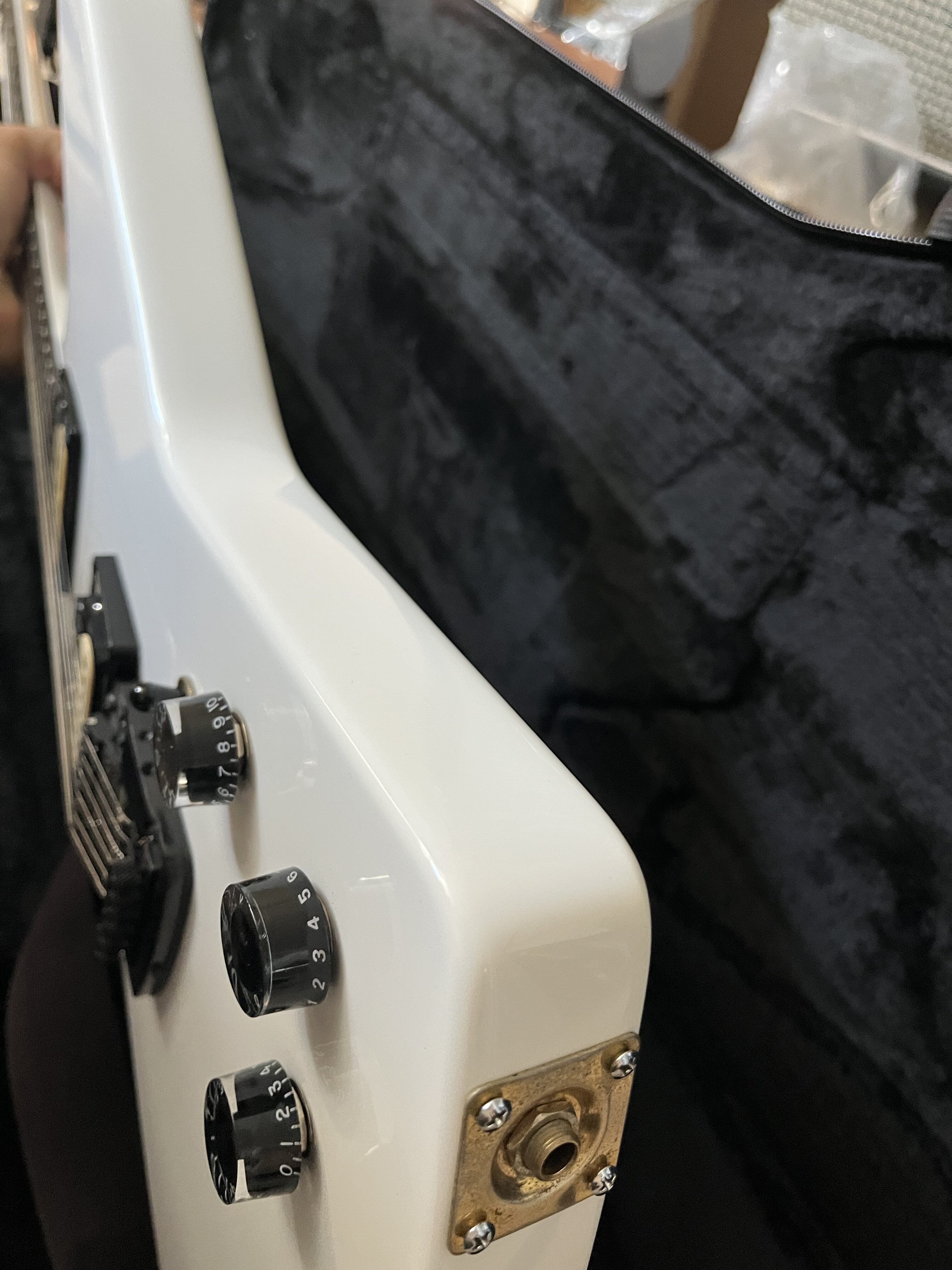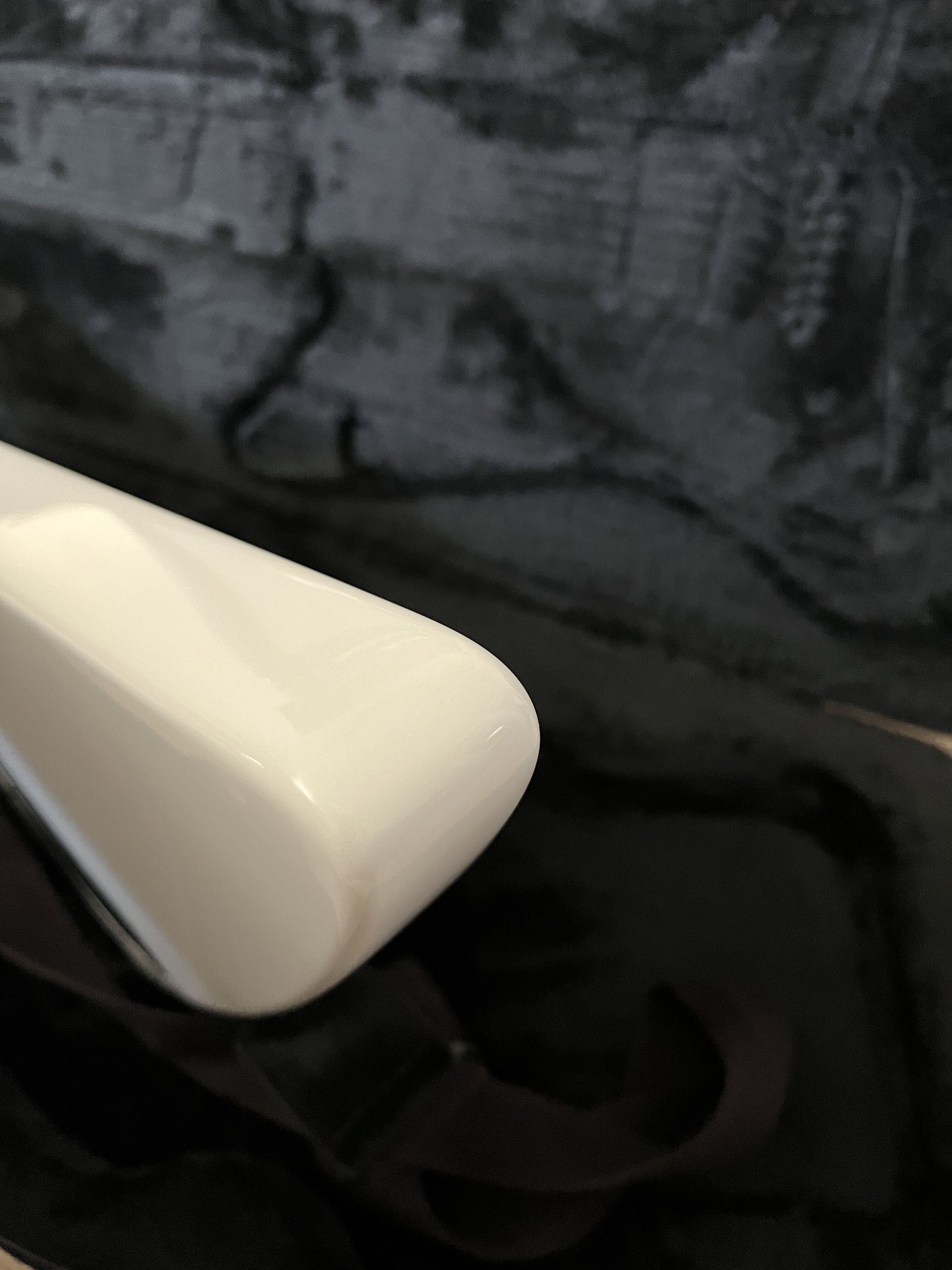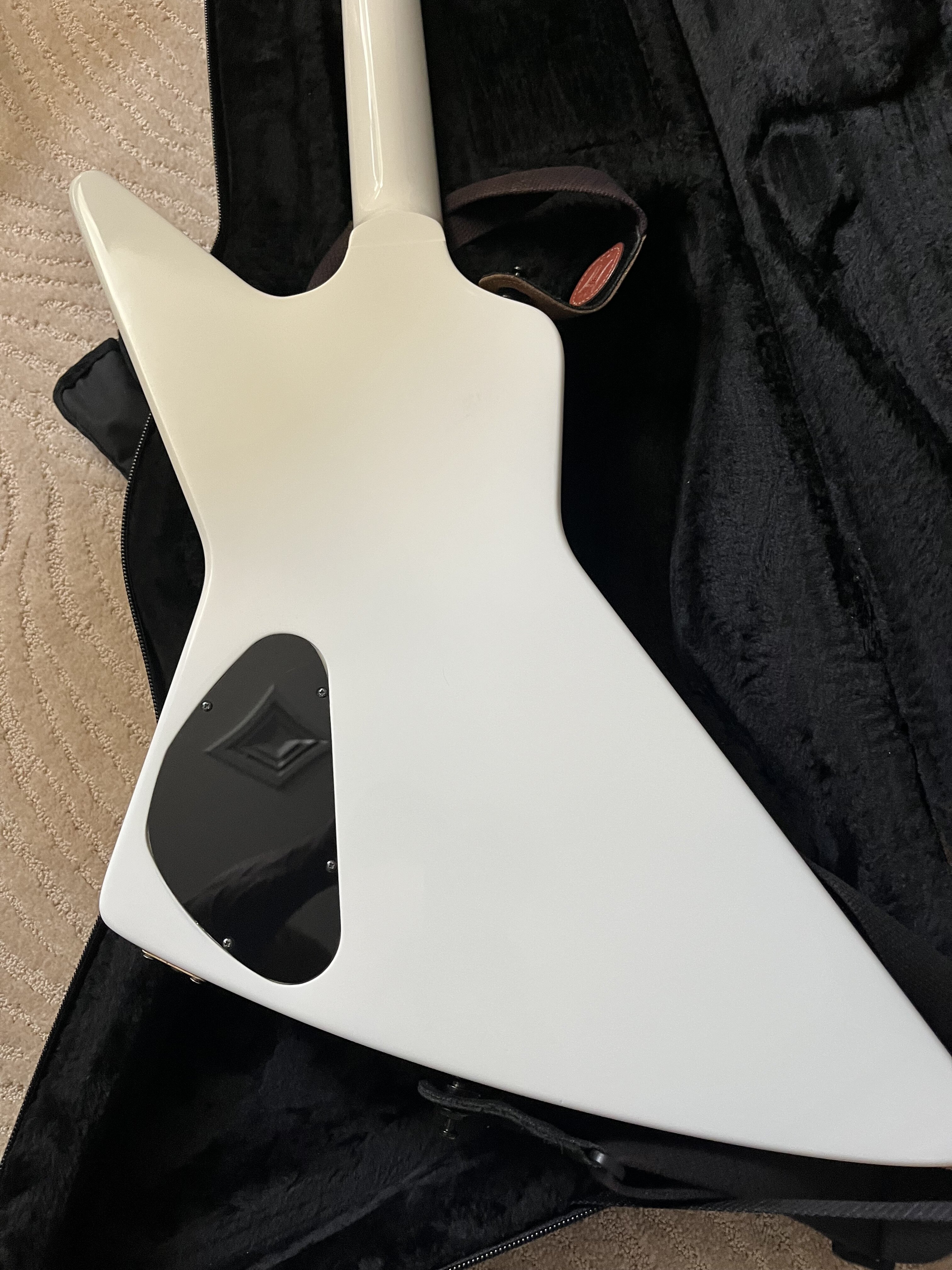 1985 Gibson Explorer was fugly pink.Marty Bell painted it Gibson alpine white. He has painted guitars for Billy Gibbons and Foo Fighters and more. Had all hardware and pots replaced except jack plate . Kahler is new and stays in tune! Sh-6 bridge and not sure of dimarzio blade. Original frets and low action. have soft case but will ship with original case if wanted. Around 10 pounds. Mahogany body with maple neck. Dust on headstock front in pic. Excellent playing , looking and sounding guitar. 3000.00 shipped ppf. Would think about trading for a 76-77 Les Paul possibly. Hate to get rid of but it’s too nice to beat up at live shows.