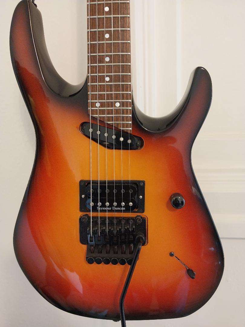 Not much to tell except the guitar is in really great shape sans a ding or two. Replaced bridge pickup which is a Duncan distortion and it sounds really good! This is a great playing guitar and it really is in great shape! Case included of course.