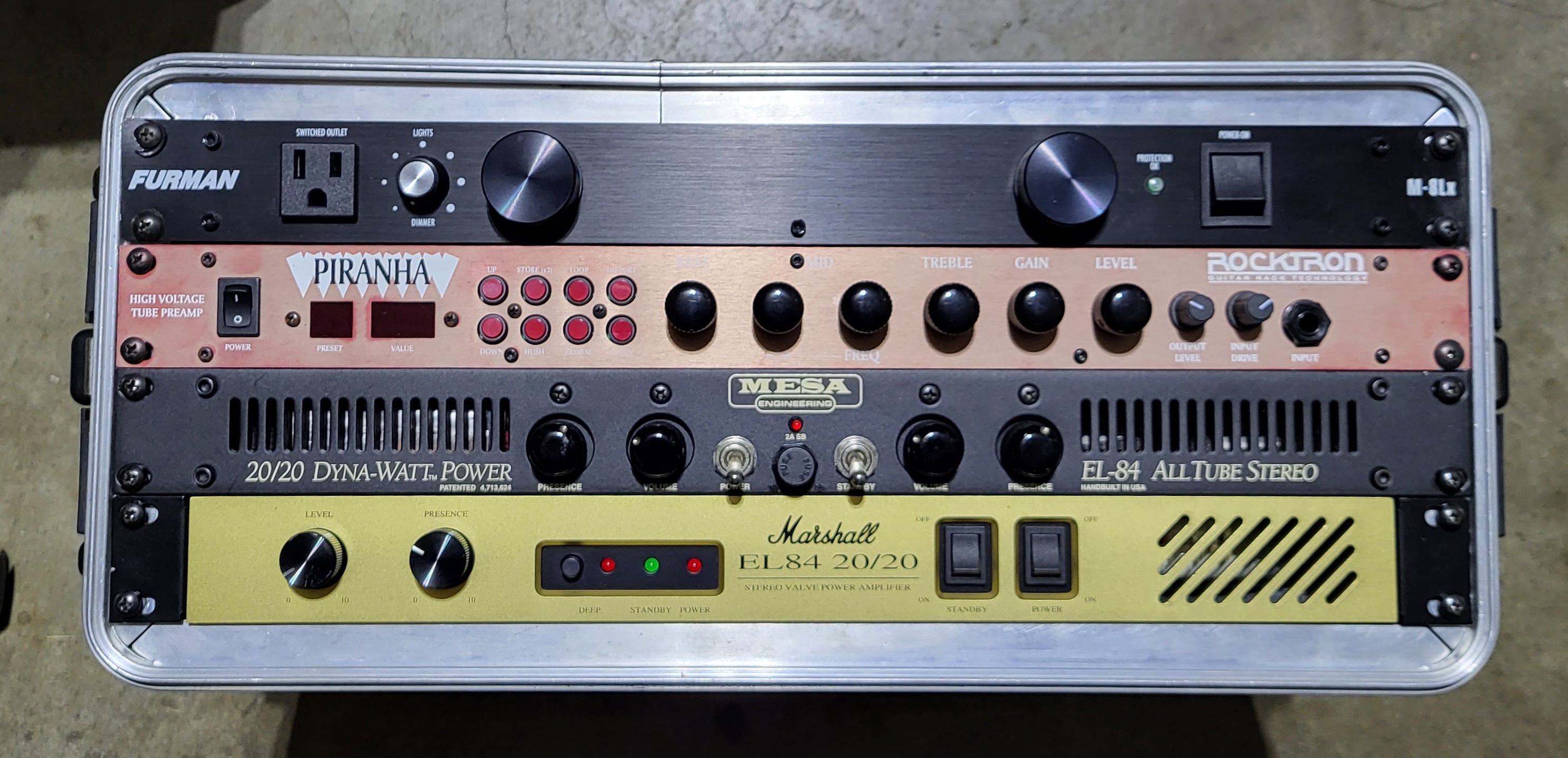 I used to own the Mesa Boogie 20/20 power amp. It was good for low volume, small gig situations, sounded good, but it lacked the headroom of the bigger power amps in their product line. I also used to own an older Rocktron Velocity power amp. It's been awhile and I'm not sure which model it was, but the power amp would go into a thermal shutdown in the middle of a show. I had no backup power amp back then and it was really embarrassing, to say the least. I sold it off to someone on Craig's List and let them deal with the thermal shutdown issues.