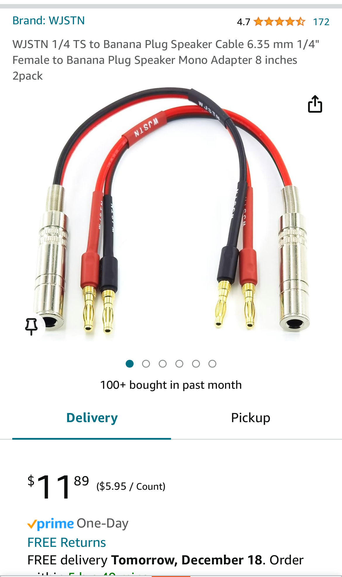 This is the one I bought.Hey @RedPlated is this the adapter you said would work? CNCESS CESS-081 Dual Banana Plugs to 1/4 TS Jack Speaker Cable ... Amazon product ASIN B082SKZKSK