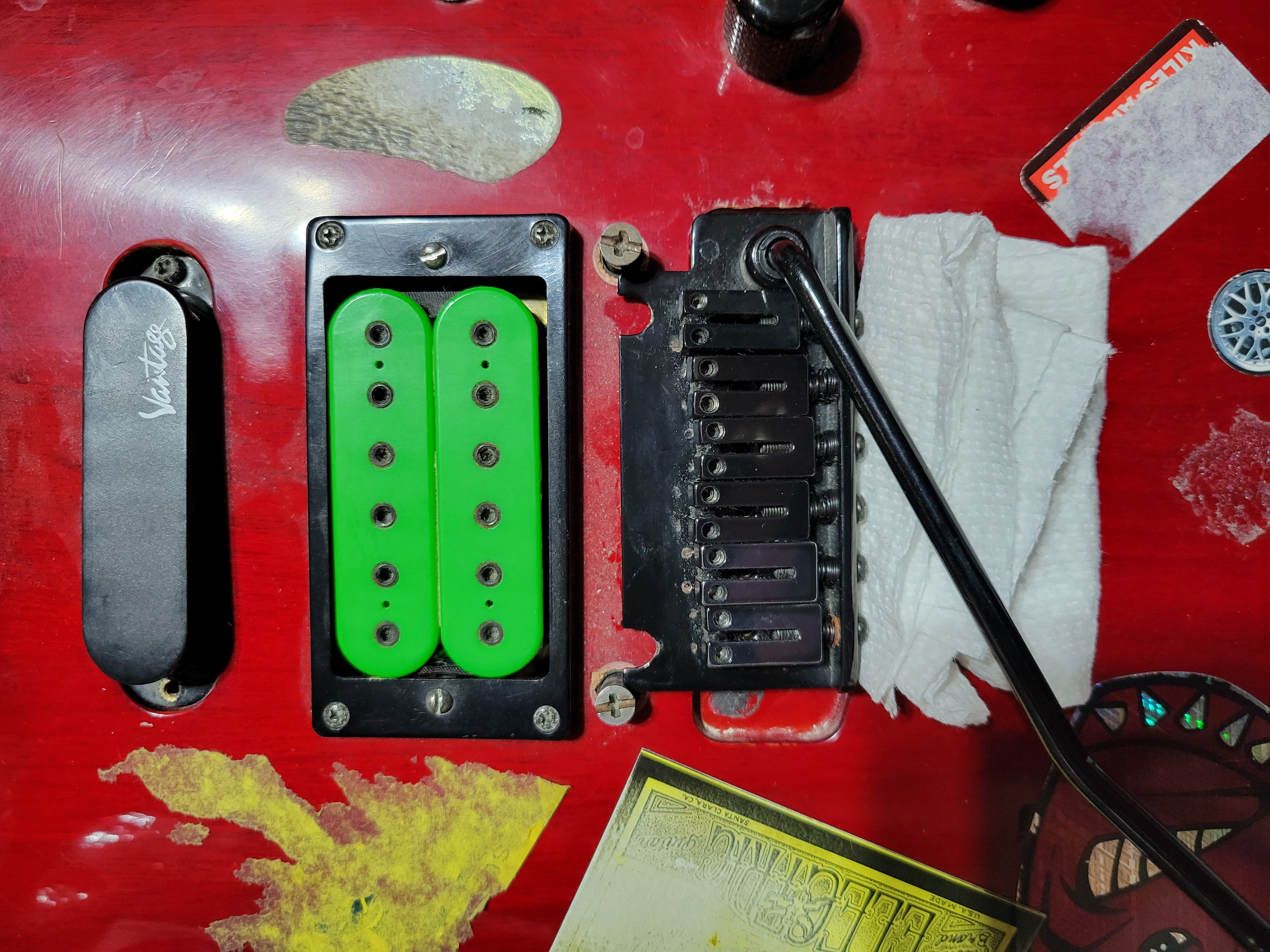 Been googling for a few days and can't find a definitive answer. I have a 2 point strat trem that I have been using with a Wilkinson VS100 but I want to try a non fine tuner floyd in it's spot. Will the floyd posts being slightly wider, interfere with existing holes of the two point? If I have to fill and sand them forget it, not worth it as this guitar has a Koa thin top over alder and it will never match. I'd prefer just to leave those existing holes and have the floyd cover it. The question is, will the holes for the floyd posts require more wood to drill into and the existing posts be in the way.