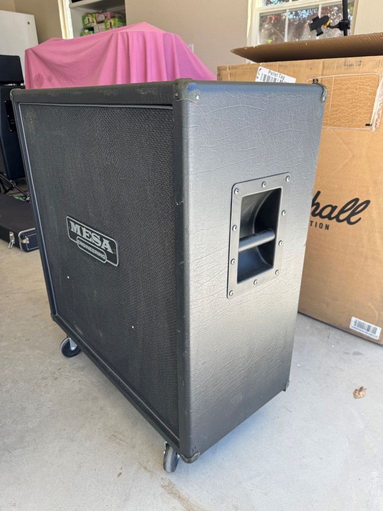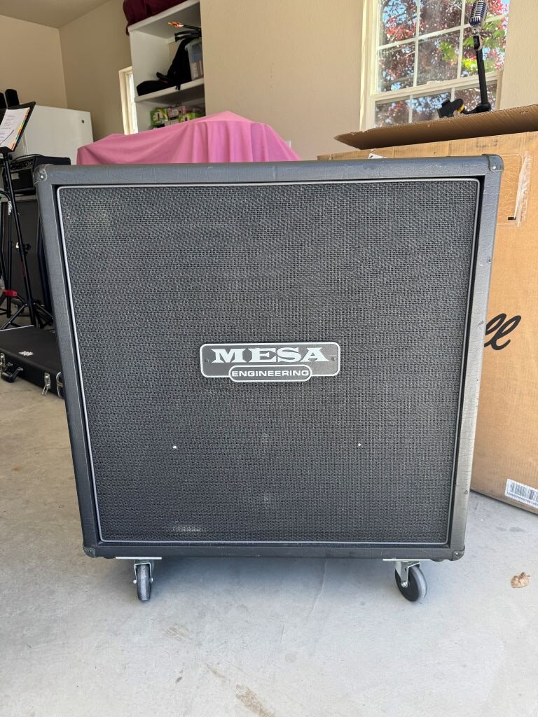 *SOLD* I'd sell one of my holy greail year Recto trad straight cabs, and since I just got a couple new Marshall cabs I also happen to have a shipping box at the moment.. This cab is loaded with Mesa T4335s from the year 2000, and crushes. Condition as seen in pics. I'd let it go for $1400 F&F shipped FedEx ground insured & sig required to CONUS.