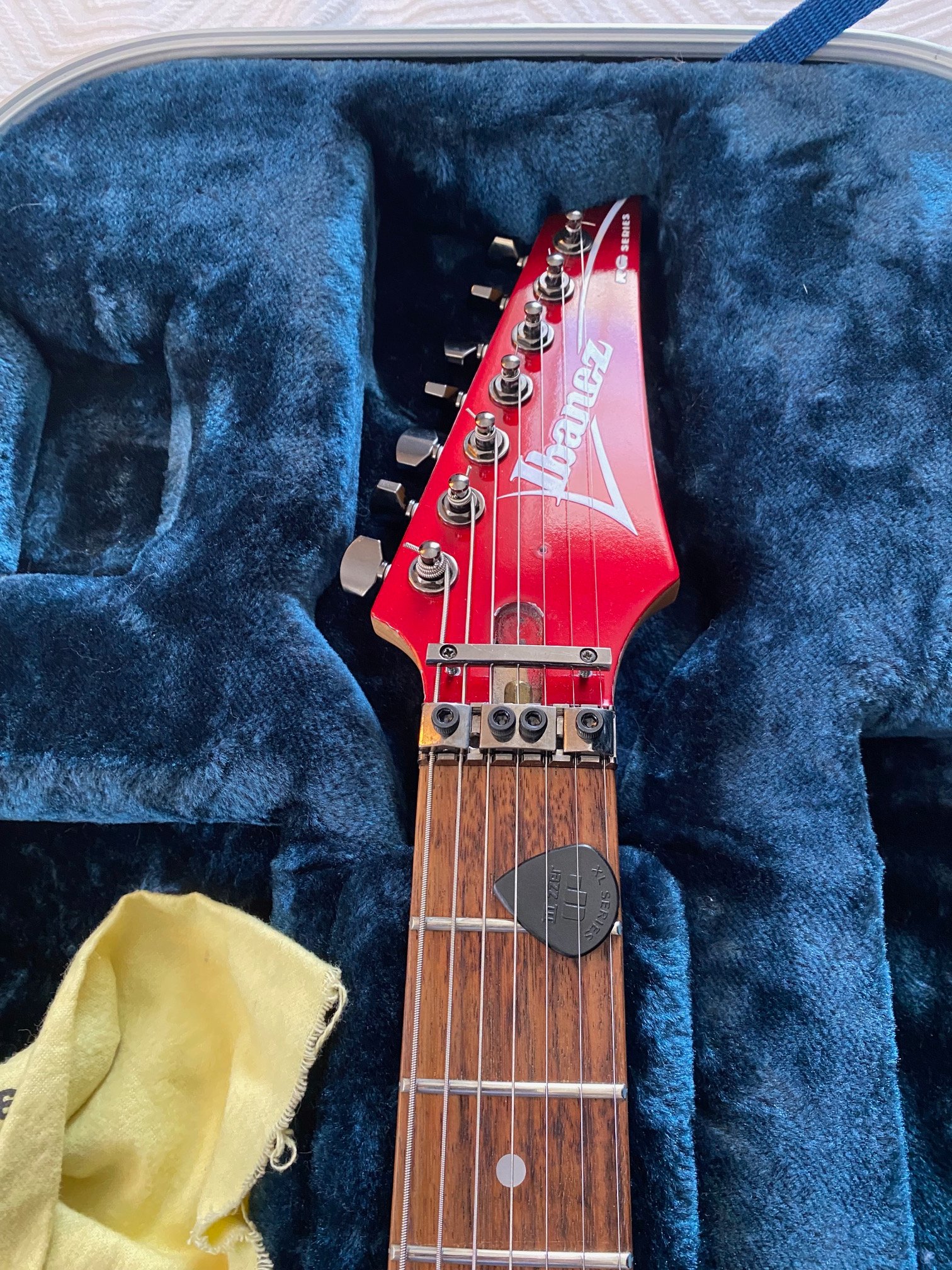 Here's an 01 RG7620 that is like buying a new NOS guitar. All hardware was replaced with new hardware, when the previous ownder had the refin done. the paint job is gorgeous, it's like a Candy apple red/vampire Kiss. frets are nice and full and even,