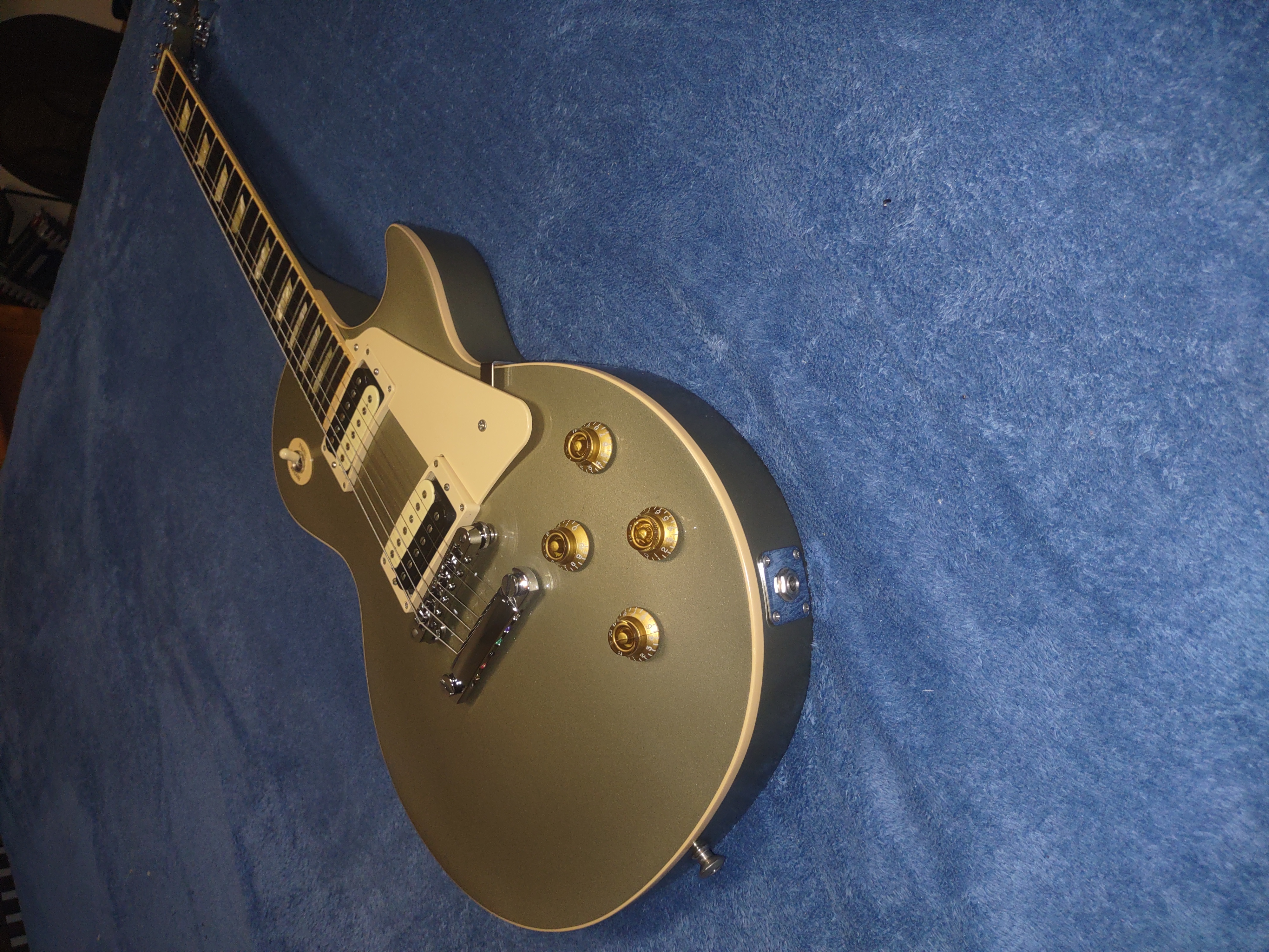 2013 Gibson LP Traditional II Pro. RARE Champagne finish, absolutely beautiful. Suhr Aldrich humbuckers in neck and bridge. Bone nut. Dunlop strap buttons. Original Gibson case and papers. $1275 shipped