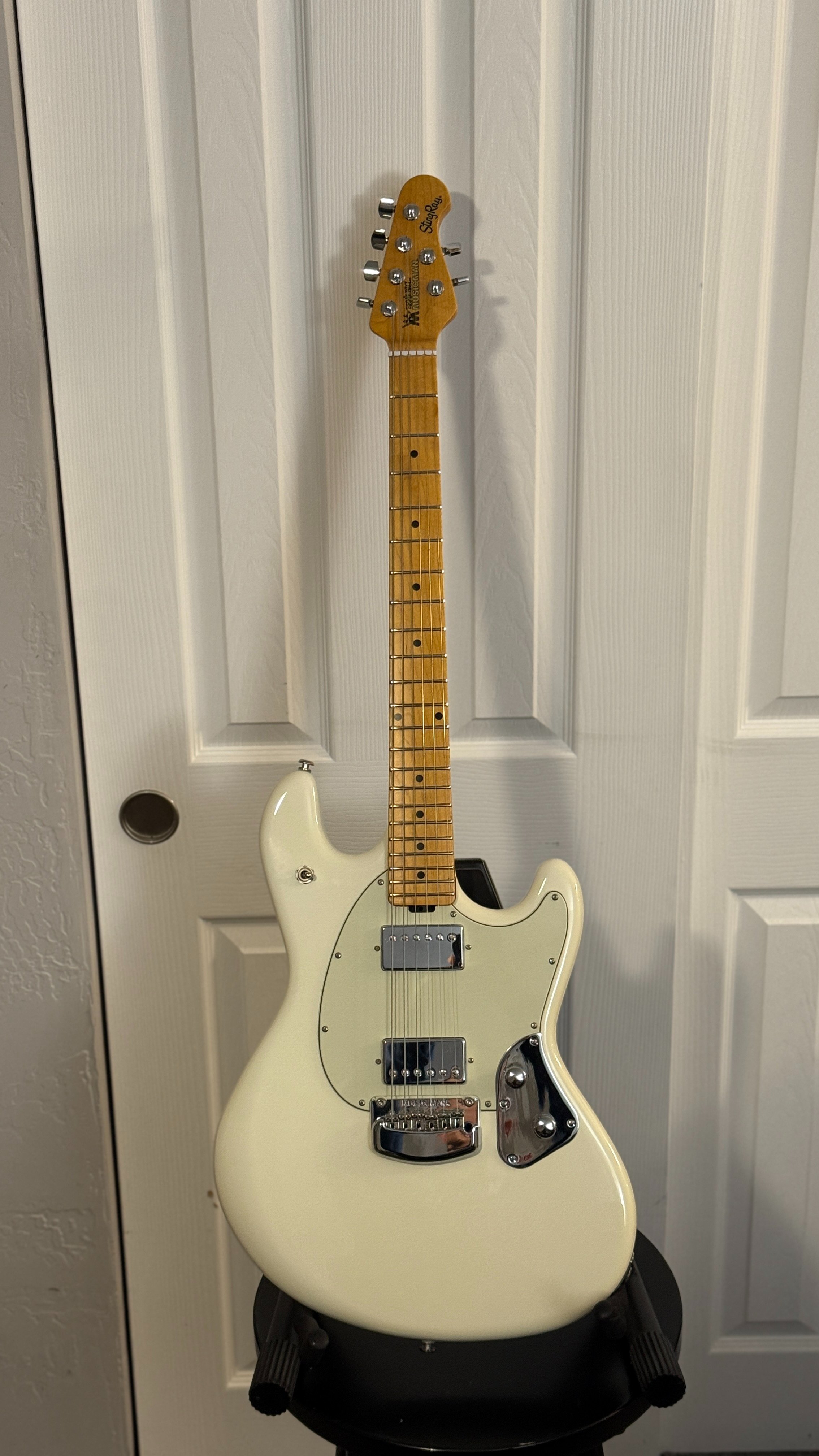Near-mint condition and absolutely stunning. This 2016 Ernie Ball Music Man Stingray HH in Ivory White has lived almost its entire life in its case. It’s as close to new as you’ll find for a guitar that’s nearly ten years old.