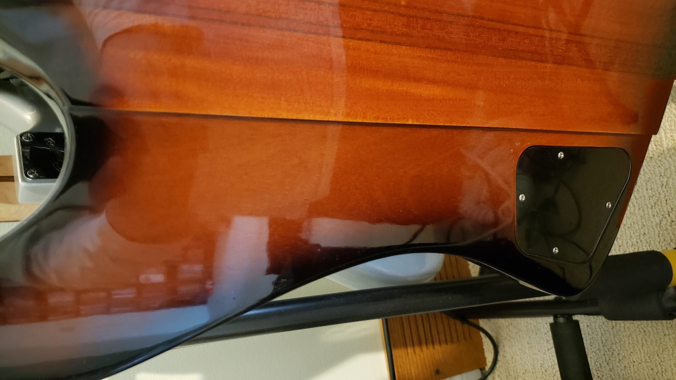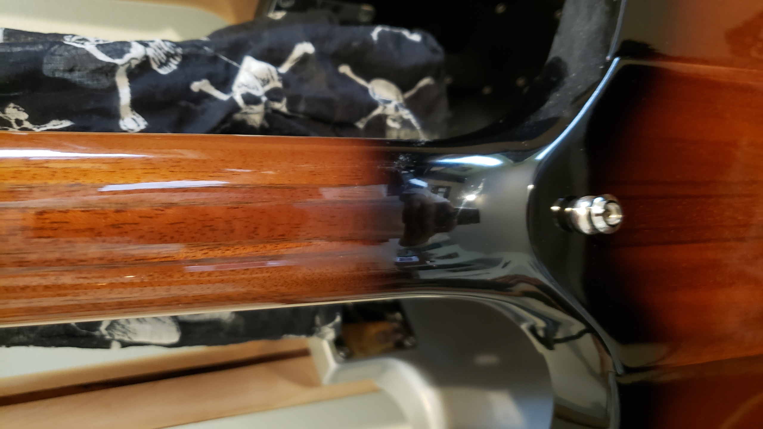 The colours of the body and pickguard are not quite right in the pictures. The pickguard does not have as much red as pictures indicate. The body is close but is still not quite like in person.