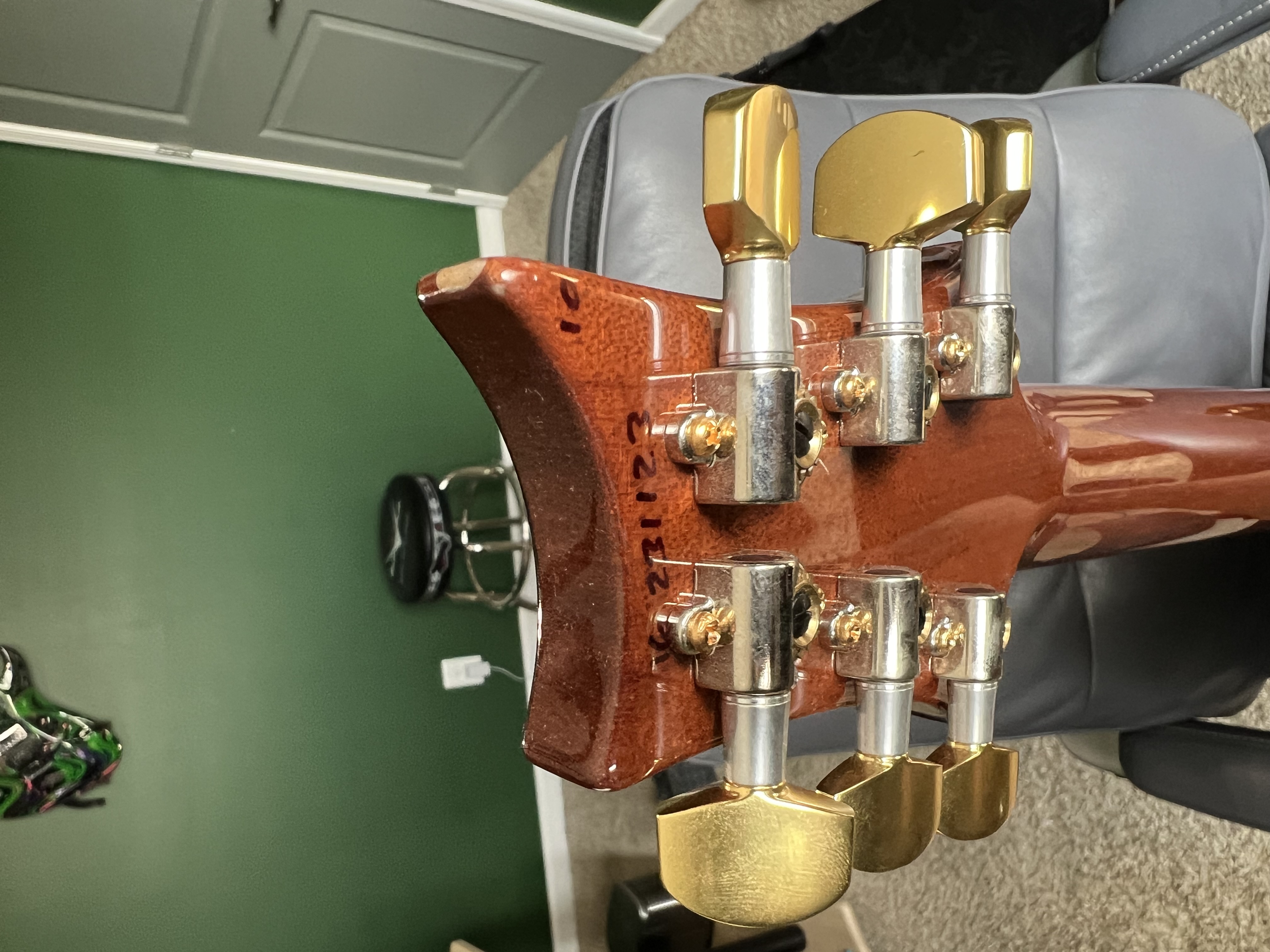 I’ve taken a pic of the only real mark I can find on this guitar, aside from pickup cover tarnishing. It’s at the top of the headstock and smooth to the touch, looks like an odd air bubble in the clear-coat.
