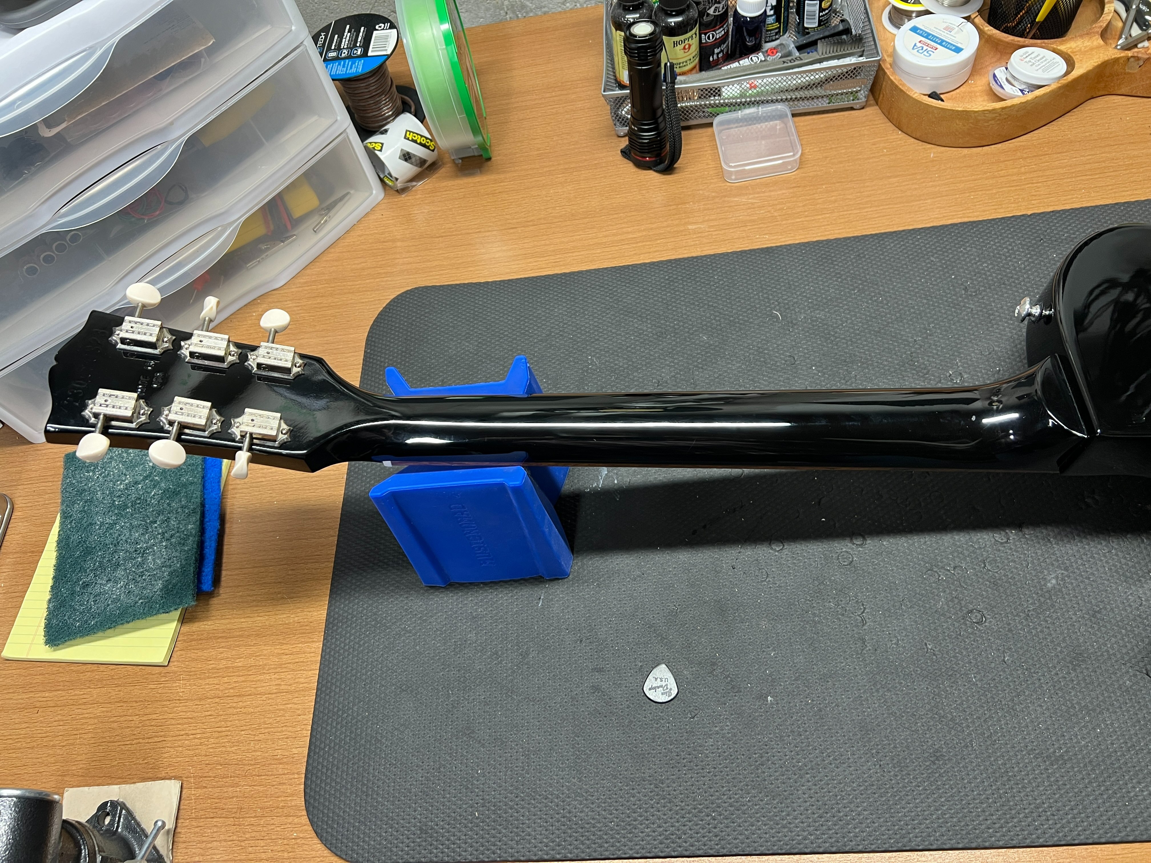 The electronics are upgraded to CTS 500k pots and Russian NOS PIO cap.
