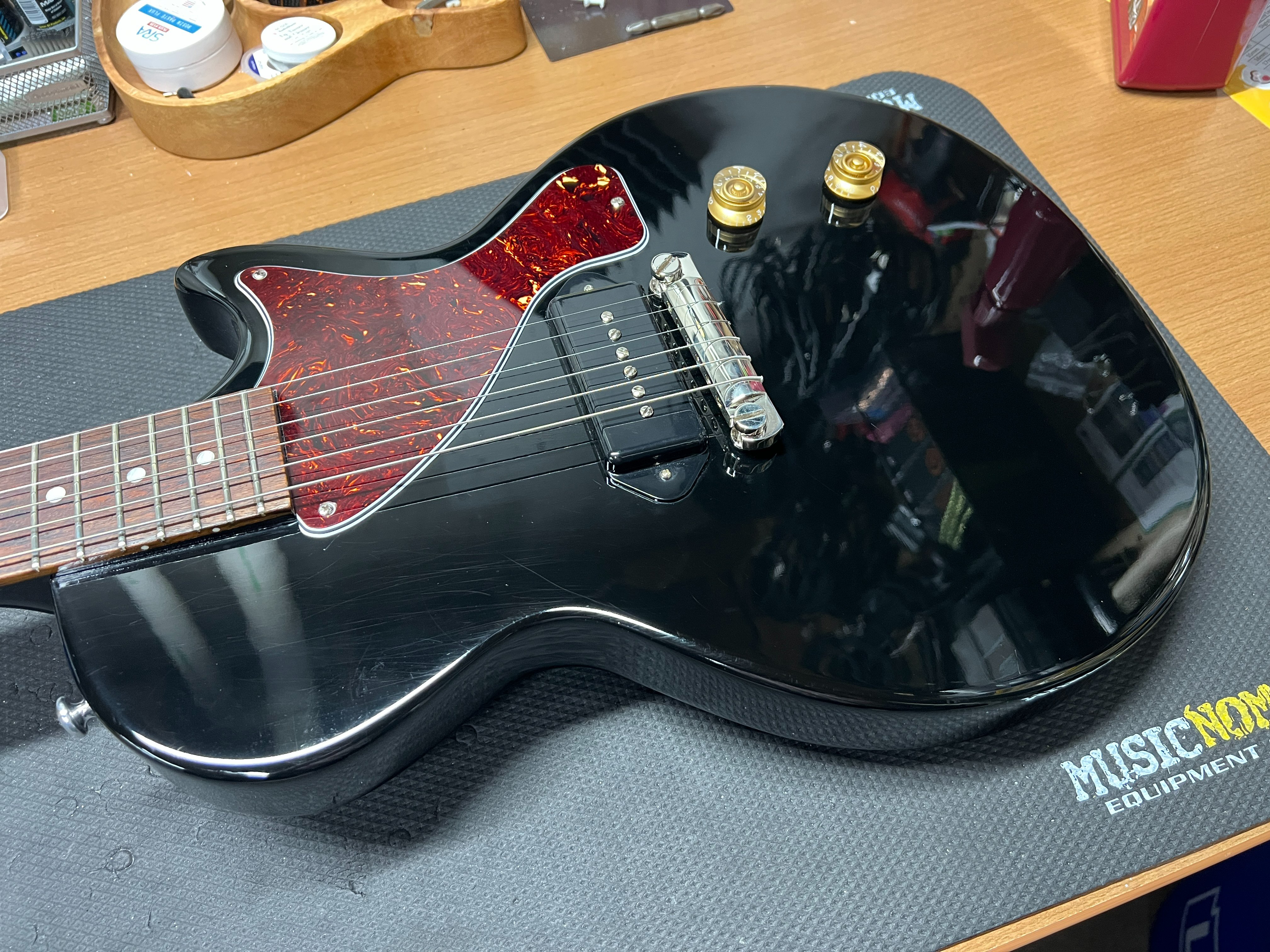 This is a KILLER guitar! The frets are level and the action is low with no buzz. The P90 sounds massive. Big 'ole fat neck.