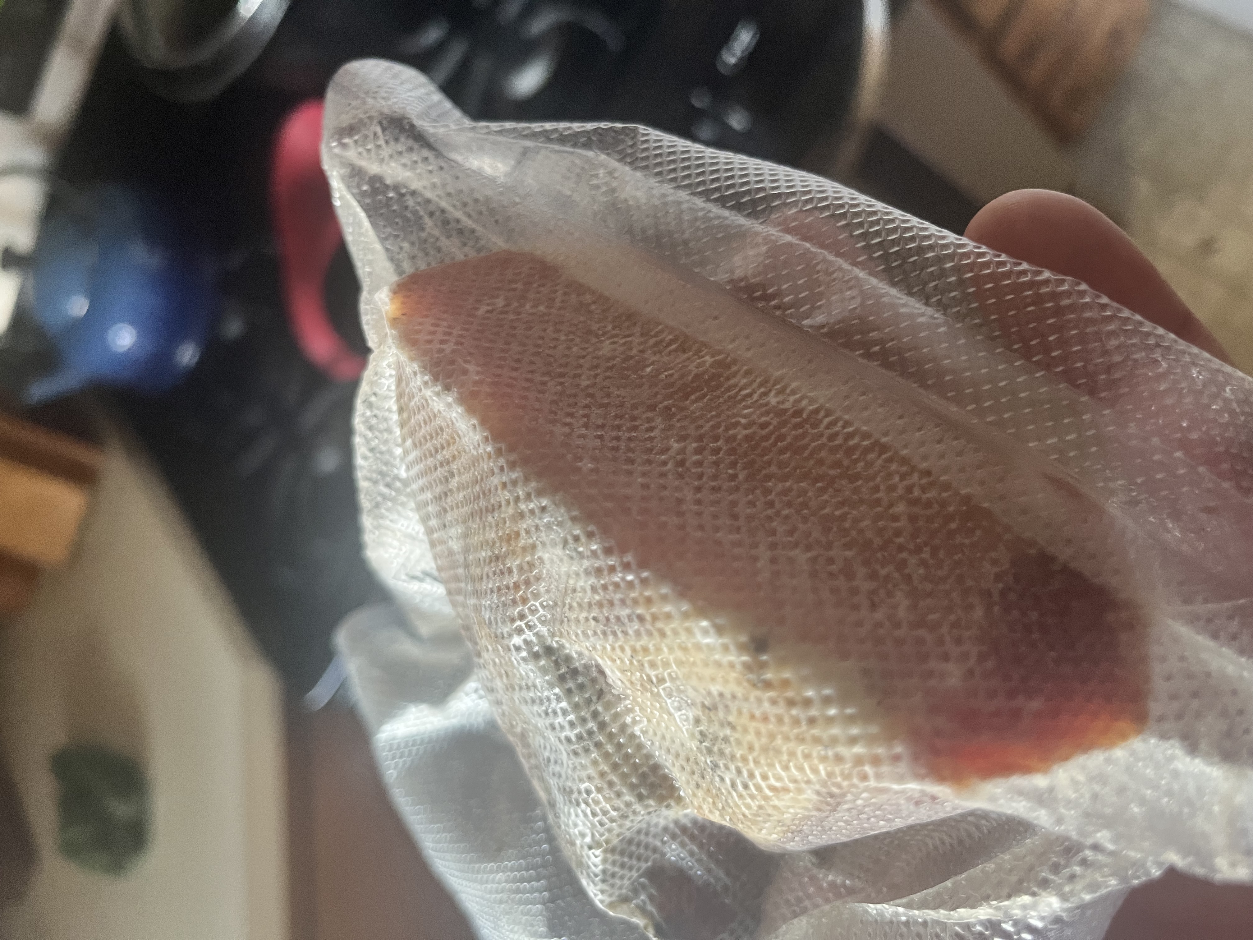 That looks like a plastic bag. Show us the bacon.I do make my own canadian bacon, for when I have pizza parties. I cure the loin and then smoke it around 225 until it hits about 145. I air seal it in portions and use them. I don't like it for breakfast bacon, but it has it's place, and making it at home is cheaper and better than store made.View attachment 387356