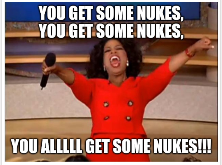 That'll fix everything all right. The only way to stop a bad guy with a nuke is a good guy with a nuke.![]()