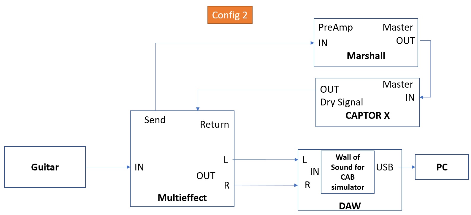 I've a Marshall JCM 800 100 W Lead Series without send and return and Two Notes Captor X with Torpedo Remote and Wall of Sound