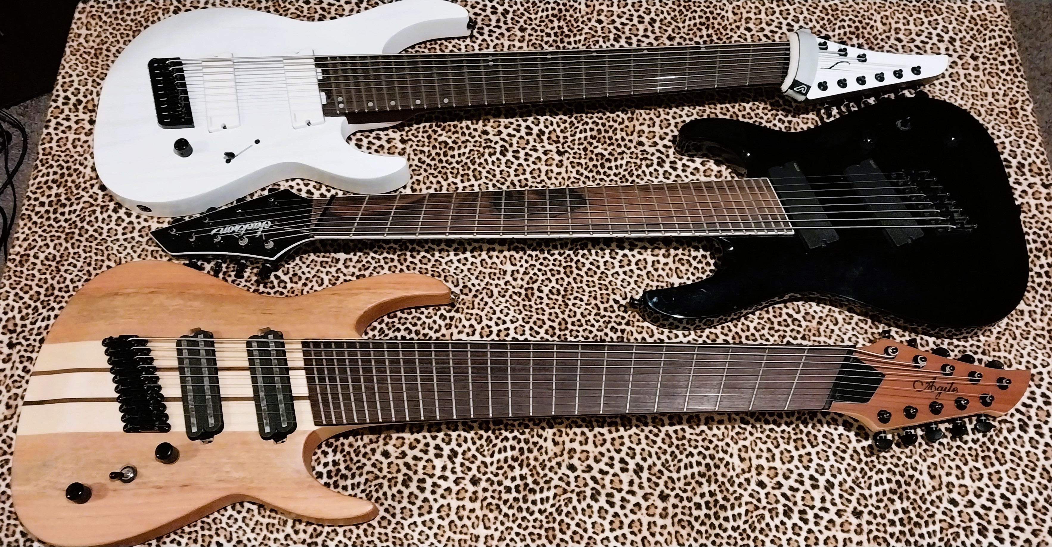 I have both the Jackson SLAT8 and the Agile Pendulum, though the latter in the 10 string variant. I was actually eyeing that white 9 before my husband got me the white Legator Ninja 9 string that I did a NGD on a little while ago. That Agile is awesome, and also comes in a longer scale version if he's looking for something with more overall droptune comfort. 100% would recommend, especially for the $. If he really likes that style, an alternative to keep an eye out for used would be the Legator Lucas Mann 9 as it's white burl with big inlays like the ones on the Agile, but they glow in the dark.