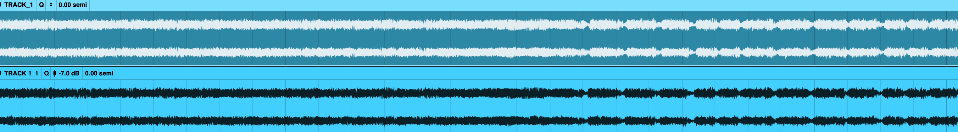 First shot should confirm the waveforms were relatively in sync. But look at the difference in the close up of the waveform right at the start of the clip, where there was silence.