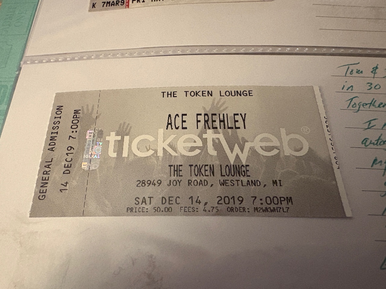 Then the BIG ONE. Saturday December 14, 2019. The Tolken Lounge, Westland, Michigan !!! Ace Frehley LIVE. Tom Cowels and i went to see Ace again….29 years later!!! It was an incredible show. So loud!! I didn’t even have earplugs. I tried to stuff 800mg motrin pills in my ears because thats all i had and i didn’t want to lose our spot in the crowd!!! I almost didn’t get one out of my ear !!! ( tom is laughing at me ). After the show, i met Ace for what would be the last time. That was the night he signed my left shoulder and the next day would become my first tattoo !!!! ABSOLUTE EPIC NIGHT!!