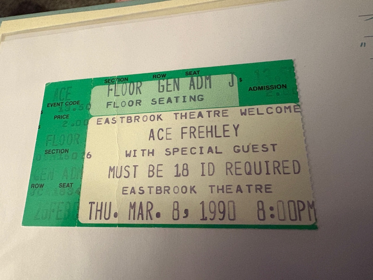 The first time I saw Ace was in 1990. It was the TROUBLE WALKIN TOUR. Tom Cowels and i went to see Ace at Club Eastbrook in Grand Rapids. Ace wore my hat that night
