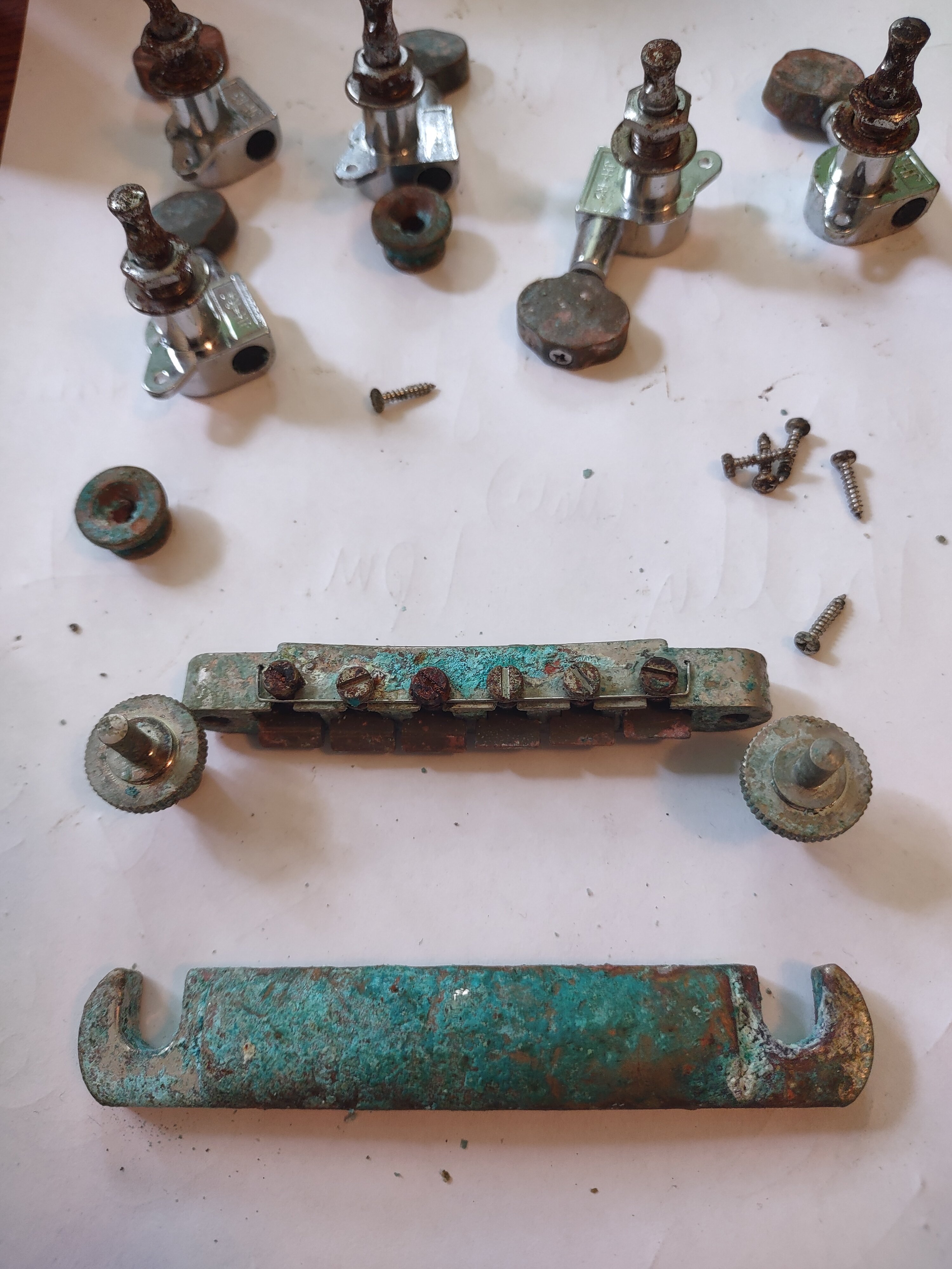 Here is a current group photo. I will probably scuff the chrome shafts on the tuners by hand since they are so tough but they aren't noticeable when installed.