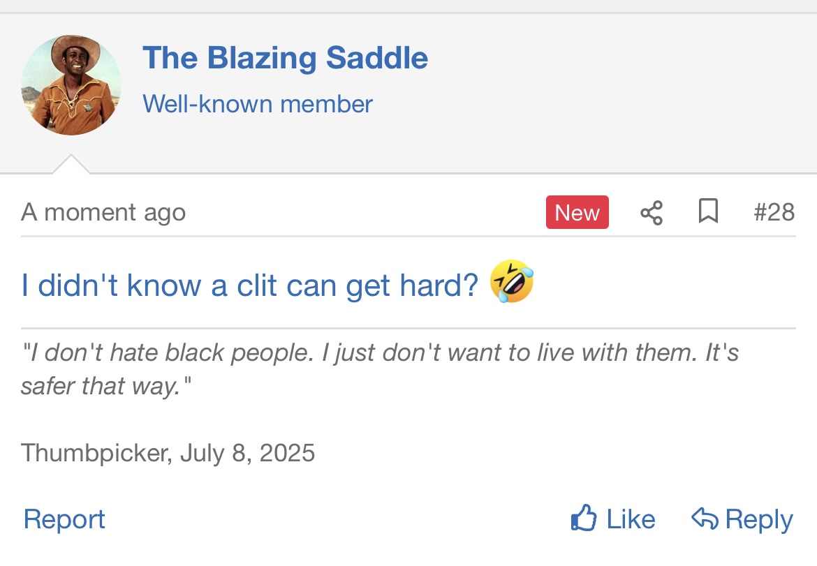 I get your joke now. Pretty funnyI thought I told you to go make some pancakes? While you’re at it go play with your clit and get “hard” again. Fucking idiot.![]()