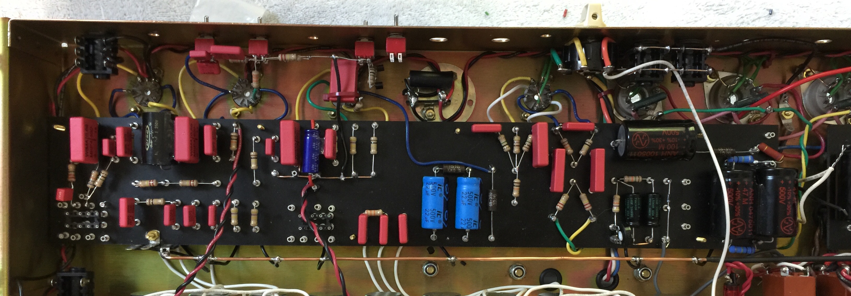 One thing though, I did use 470pF caps for the tone stack and treble circuit because I didn't have any 500pF or 560pF on hand. Upping those might be a good idea too.