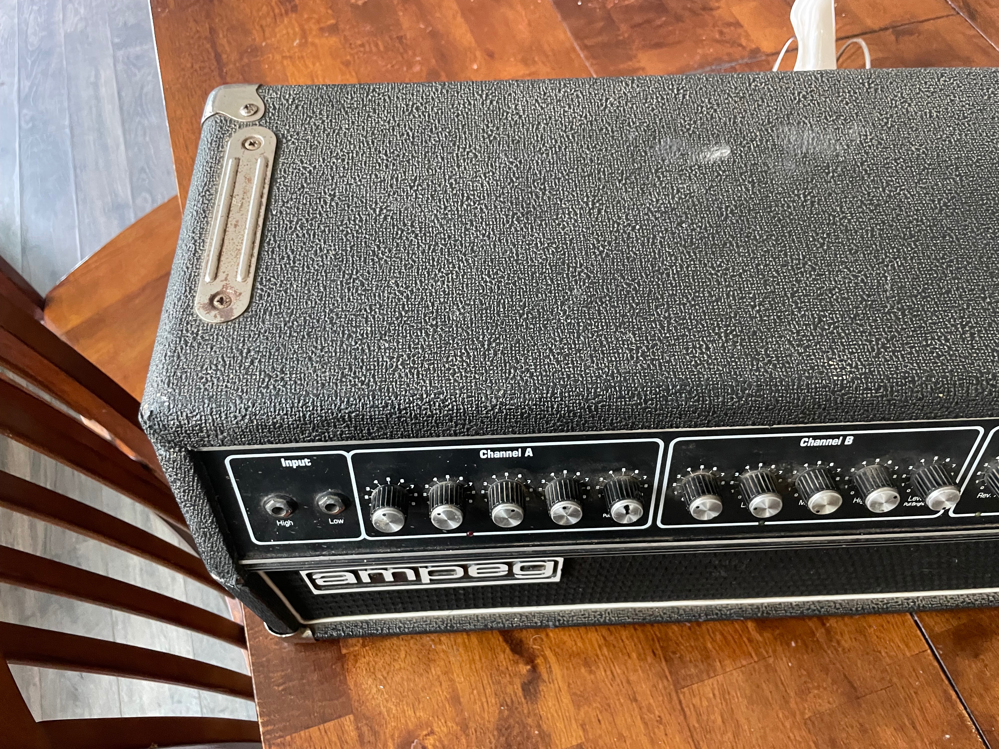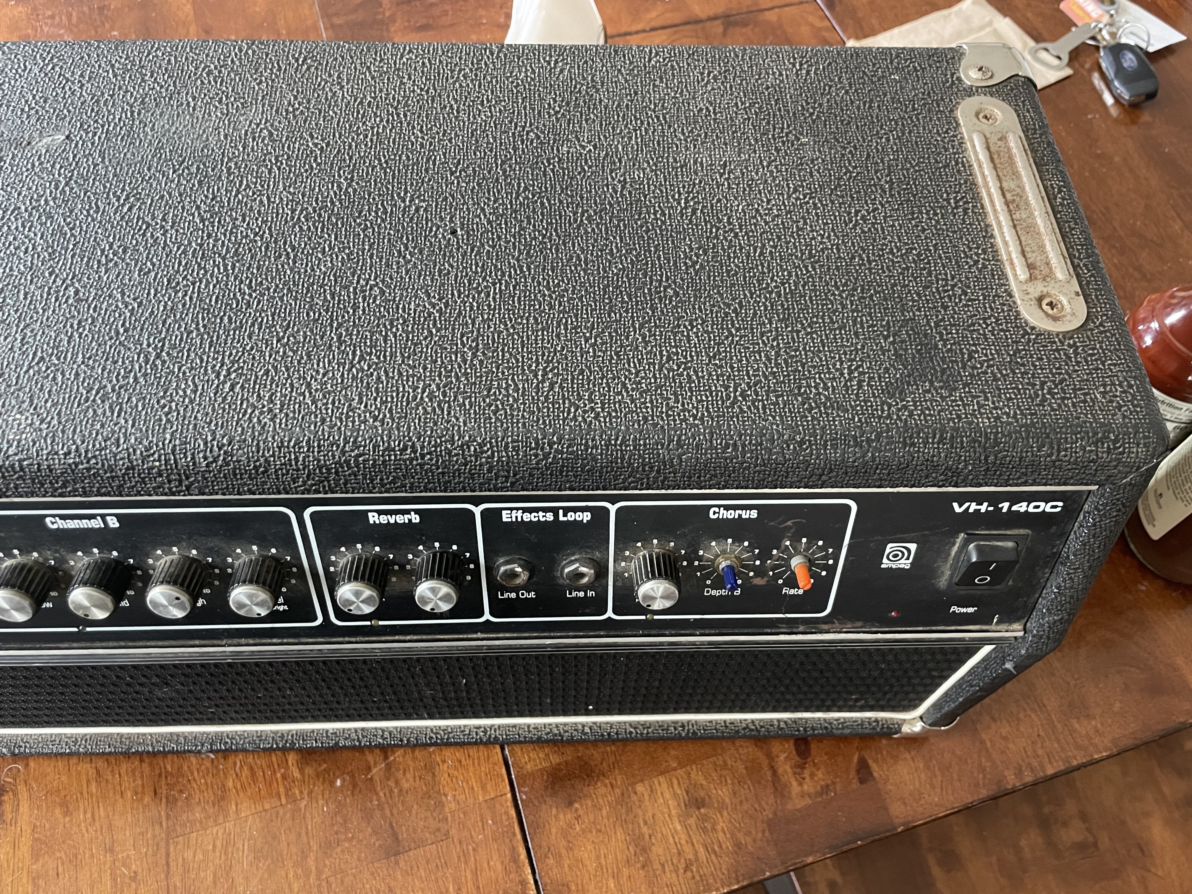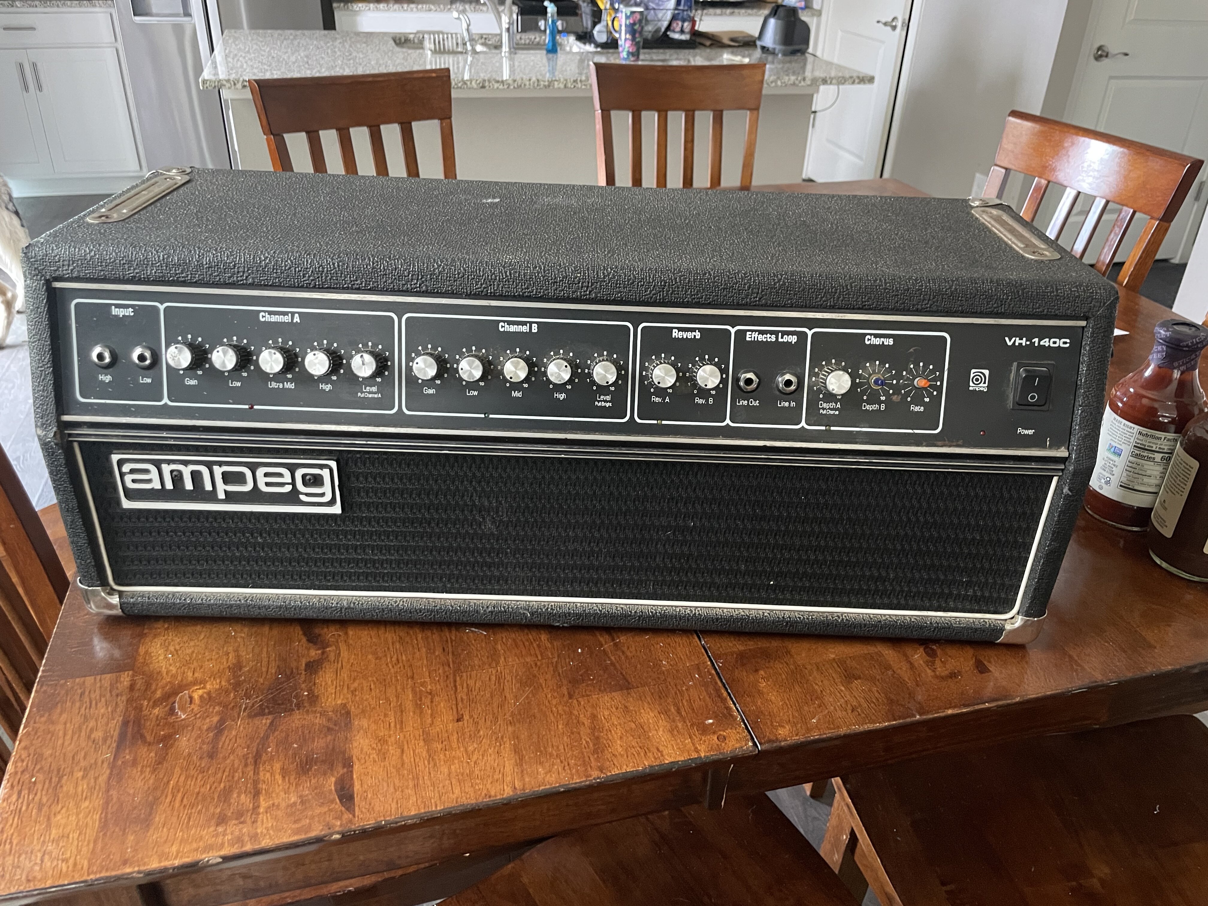The OG ampeg vh-140c 2 knobs missing but I’ll put something on there. It’s missing the handle but I’m putting one back on before sending it out. It still plays and sounds good. Can take it to my tech before sale as well. 1200 OBO or trades?