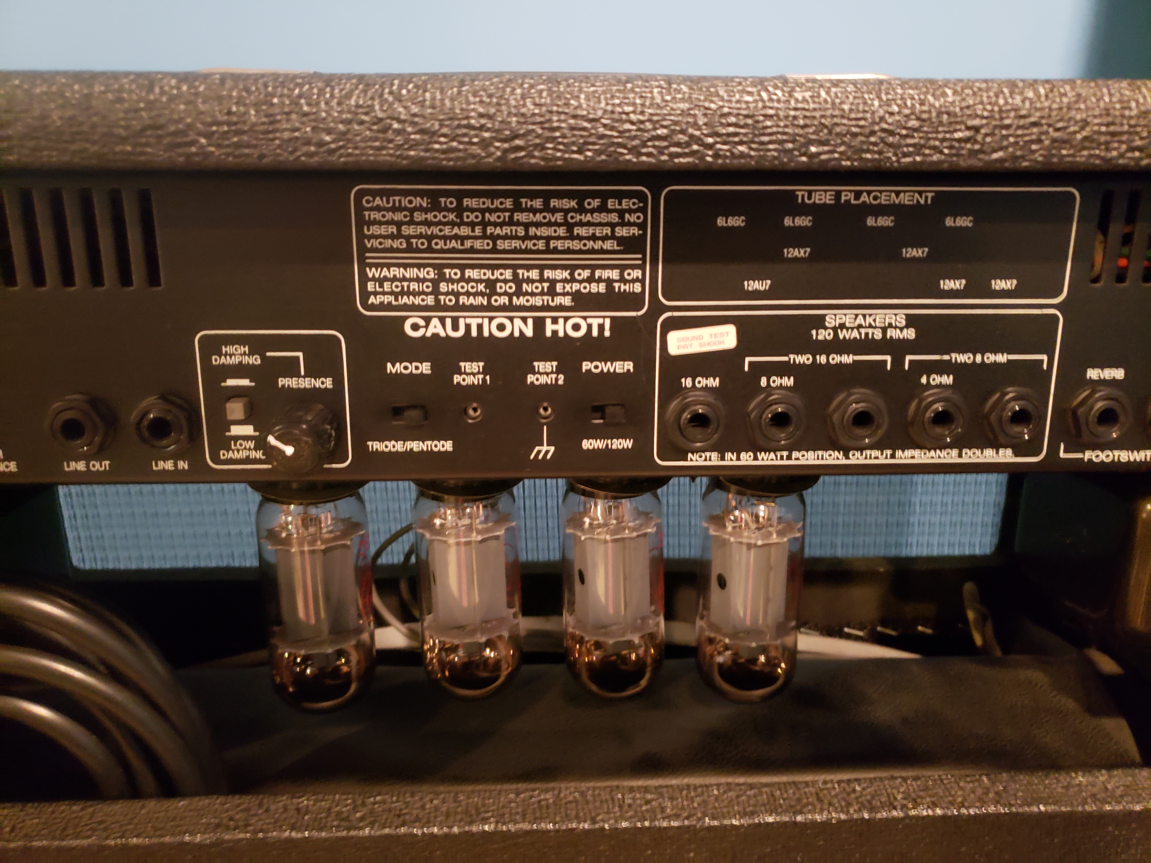 This is a 120 watt, 3 channel monster. This is a KILLER amp, especially for the money. You can get everything from pristine cleans to a slight overdrive, full blown crunch and massive hard rock tones. It takes pedals well and is packed full of features like presence, reverb, pentane/triode mode, ½ power switch almost every kind of speaker output you can imagine. Full Specs are included below.