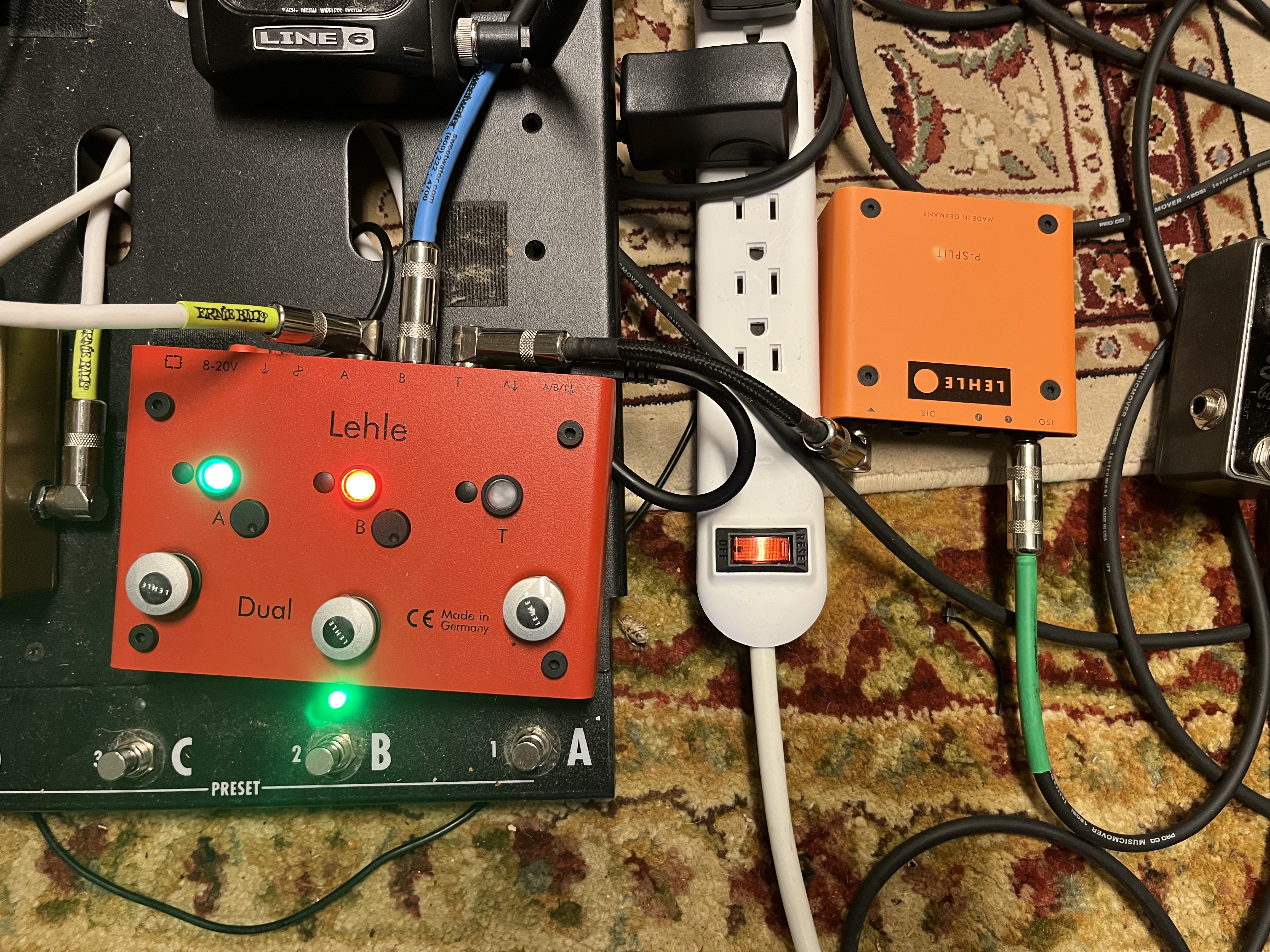 Using 3 amps; SLO100 as core dry, Mesa stereo/fractal as wet, and an EVH 50iii as the lead over the top. My EHX ABY had a ground loop. It was on the EVH when engaged or silent. So I purchased the Lehle SGOS and the Lehle P split iii to isolate all amps. Dammit man-ZERO noise. I am so enamored with what I got. I know there is better stuff out there. I know this is a but ton of money and maybe I’m not good enough to own it but who cares. I’m happy. Can’t wait for my next show. Yes lots of shit to haul but since my son owns a trailer company I get to back this right up to the stage and let the young folks put it out.