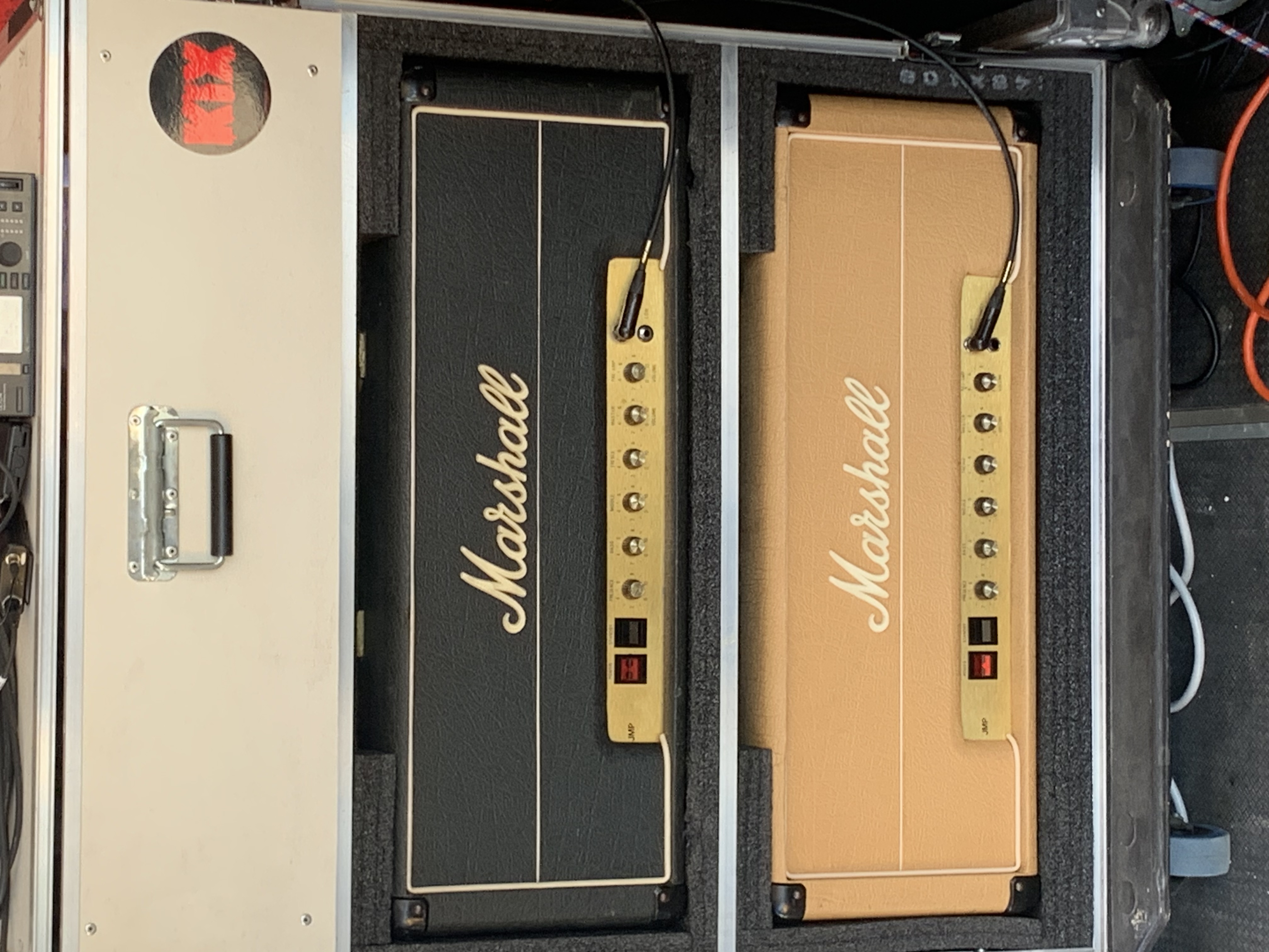 We got to the gig and heard talk of a 4 piece Kix. Stage left was absent Brian Forsythe’s rig and we figured he may have had a Rhino Bucket show. Turns out he was/is in the hospital and at the time Steve announced the news, Brian’s condition was unknown. No other details. That left all of the guitar work to Bob Paré. Bob took the place of Ronnie Younkins about two years ago. Bob’s rig is either a Les Paul or SG into two master volume 50 watt JMP’s as seen in the picture. Cabs are two of the handwired 1960AHW. His pedalboard was a tuner, Analogman Bad Bob, and a Centura. There is no better rock tone than a Marshall JMP and I’ll fight you if you disagree.