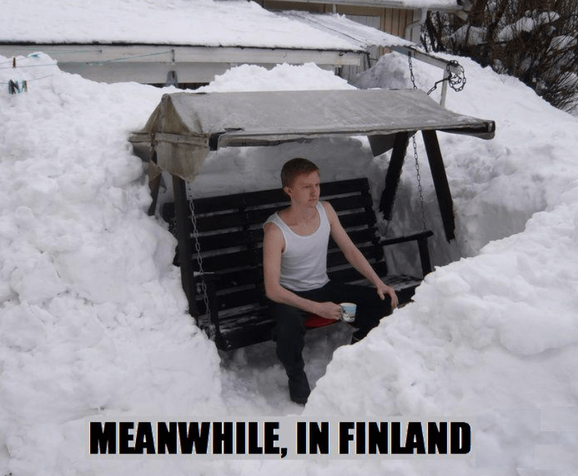 Difference is that guy in Finland would have an Oak tree fall on him if he were hereand that's really a dusting compared to this
