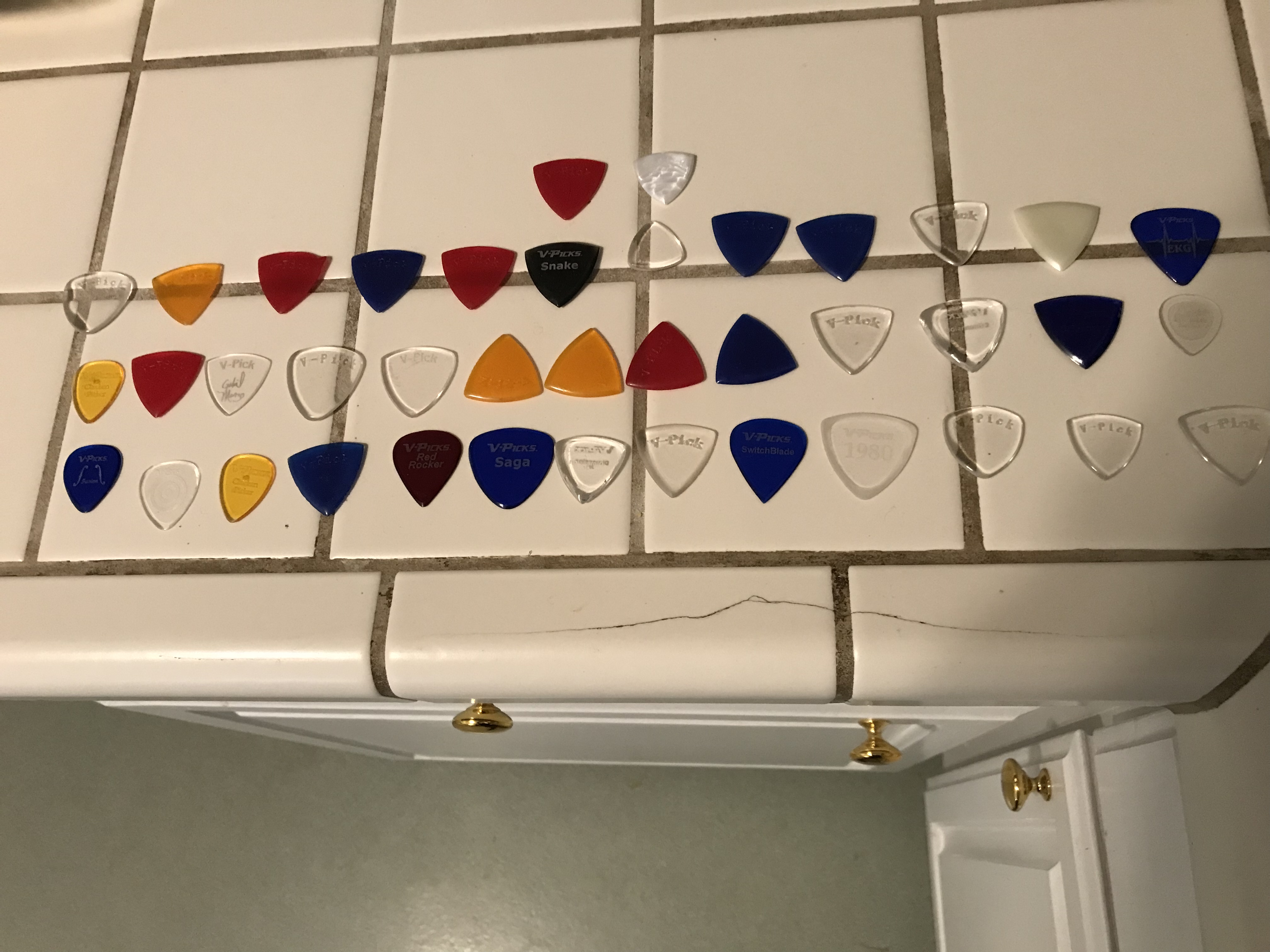 I’ve had other picks that had things going for them with tone or unique materials, but that particular v pick is just right for me in playability and getting the aggression I want from its points. Much easier pinch harmonics also