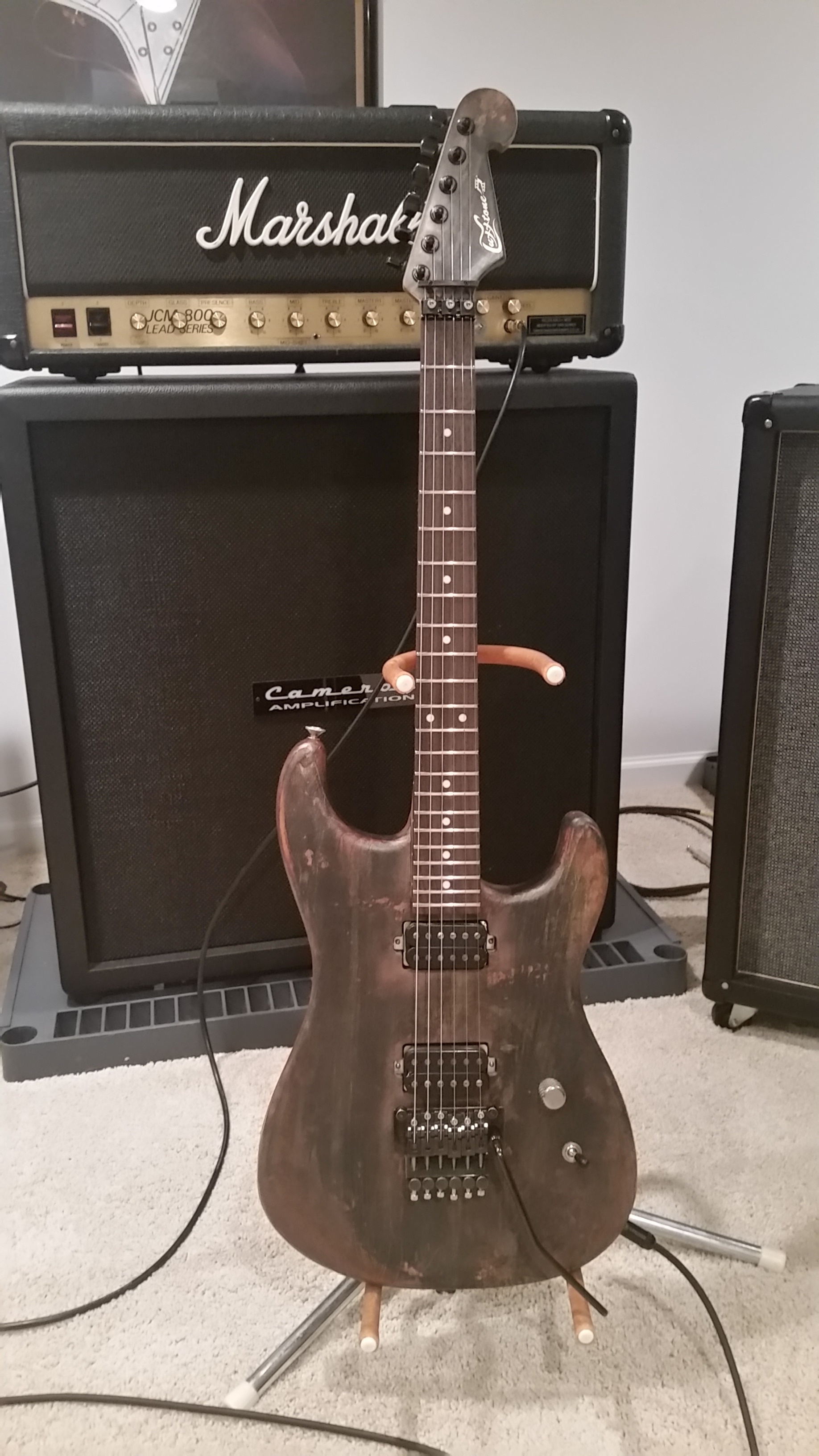 Not showing my Les Paul, Fender strat or pro mod Charvel. I'm probably going to sell the salmon Charvel Nitro soon since I have a Charvel on order due to be done soon.