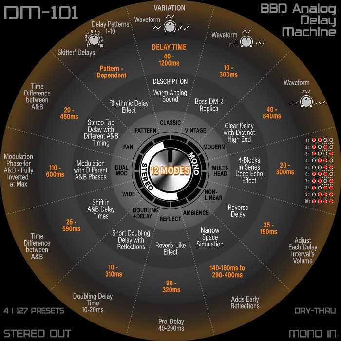 does it support having multiple, parallel delays?I have about 7 hours on the BOSS DM-101. Each of the 12 modes can do several different types of modulation via the Variation knob. It might be the most versatile analog modulation pedal ever made. Not to mention the delays sound as good or better than any of the BBD pedals I have used.