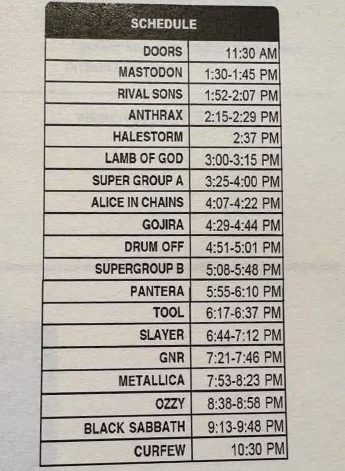 Even better is that Halestorm has only been allotted 1 minute for their set. That’s more than enough.Wow, The Doors are opening the show with a 2 hour set!?!? That's pretty unexpected (especially considering 2 of them are around 80 years old and the other 2 are dead)!!!