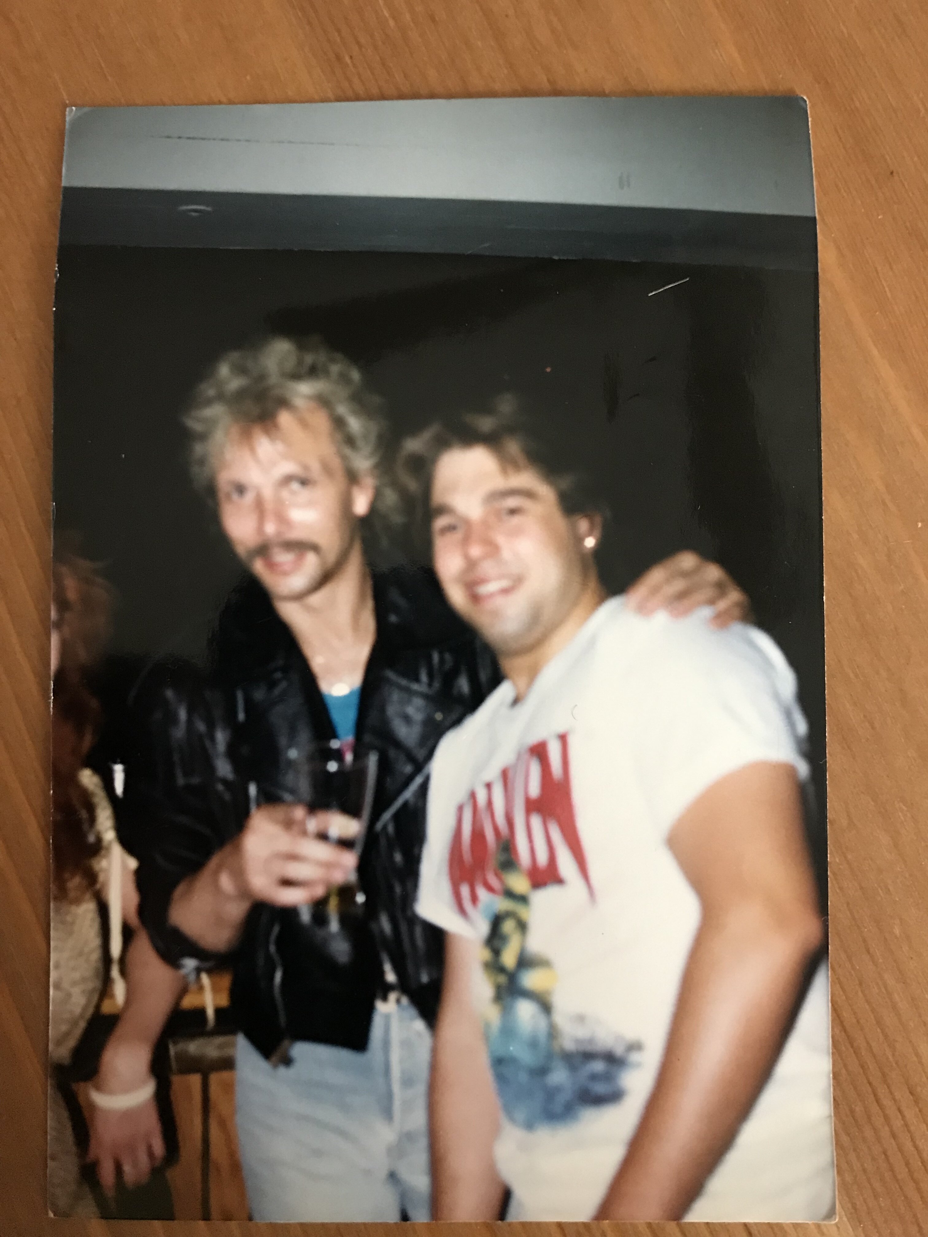 Jabs is a TOOL!!! In 1988 we stayed at the same hotel as all the bands on the monsters of rock tour. This concert was at alpine valley in East Troy Wisconsin and the hotel was in lake Geneva. (The old playboy club) a few hours after the show, all of the band members, except for Van Halen were in the hotel bar. I walked right up to Rudolph who was drinking at the bar. Said hello to him, shook his hand and bought him a beer (Becks) we talked for quite a while and he even bought me the next beer. In that photograph, Kirk Hammett is at the bar right next to me. We spotted jabs sitting in a corner table with some people and being starstruck young kids, We were just kind of looking at him. You know what I mean? All of a sudden his bodyguard comes up to us and says, stop staring at the man you’re making him nervous. What a Prima Donna. Rudy was so cool and nice to me I’ll never forget it. (Even with my Van Halen shirt lol) they all had bodyguards in the wings in the bar. And when I asked Rudy if I could take my picture with him, he said in a thick German accent. “ you see that guy over there, usually he doesn’t let me do things like this, but this time I say ok!”