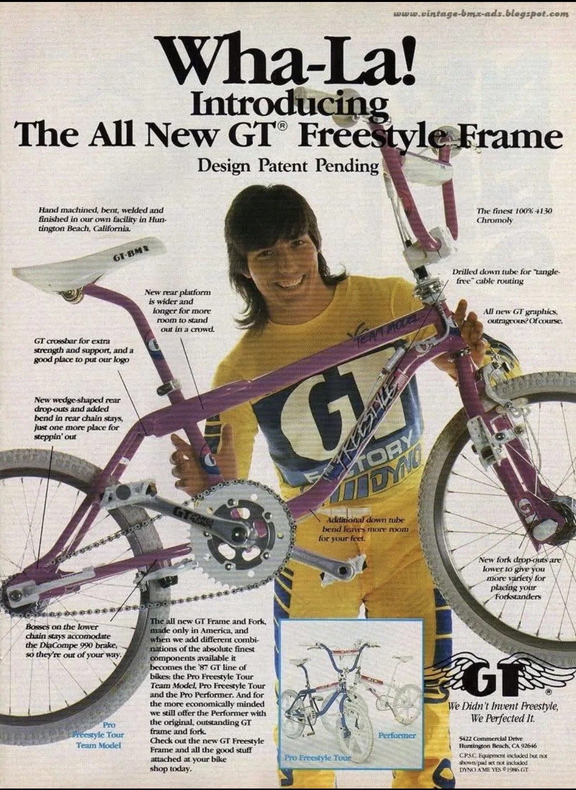 I worked in a bike shop at the time, GT made good stuff. I had a GT Pro frame and fork before the Performer came out.That brings back great memories. In 86 I saved-up for and bought a turquoise Pro Performer, loved that damn thing.