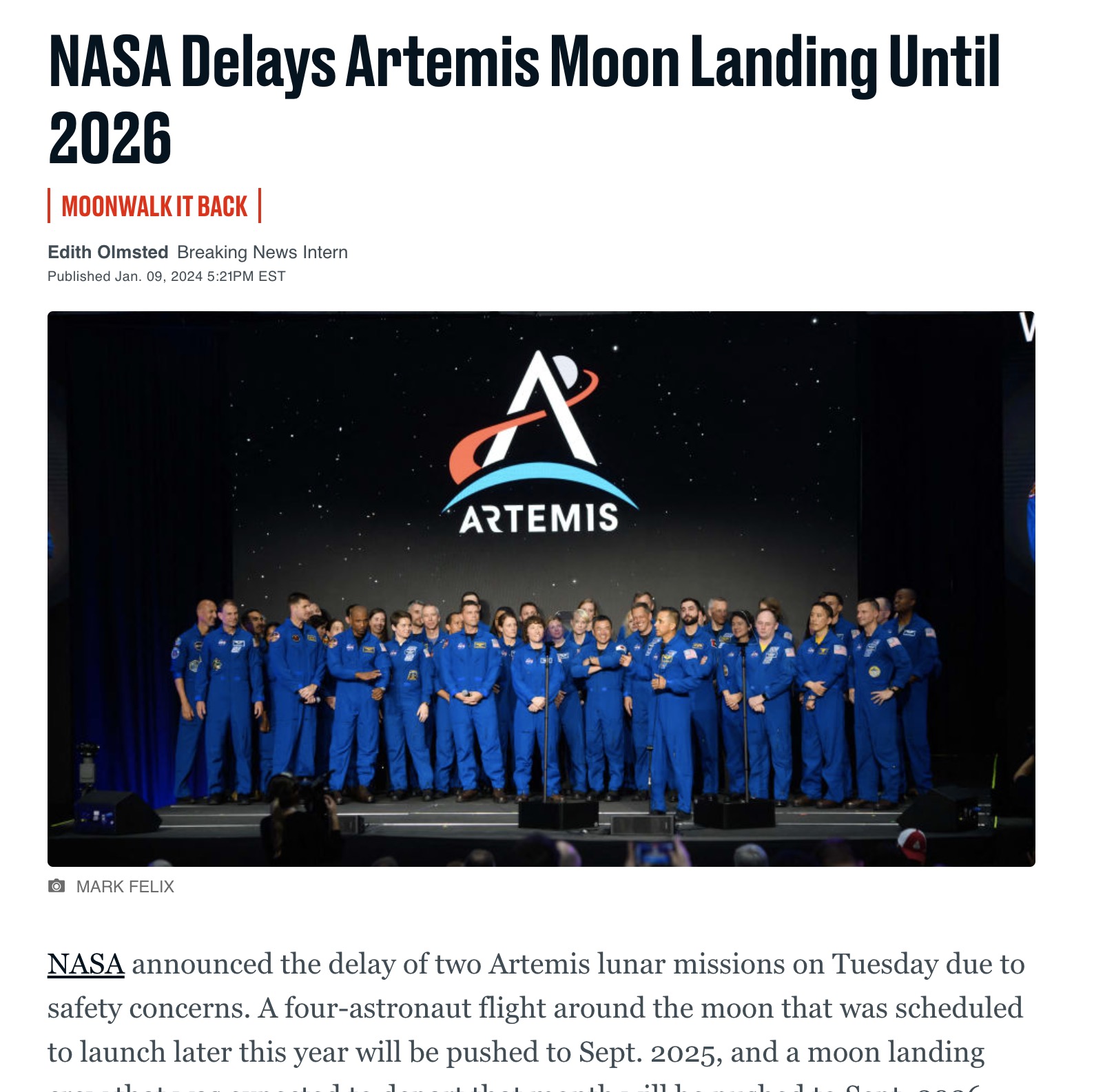 If they keep delaying the trip the next excuse will be that the moon has moved too far from earth to make it possible to visit again.