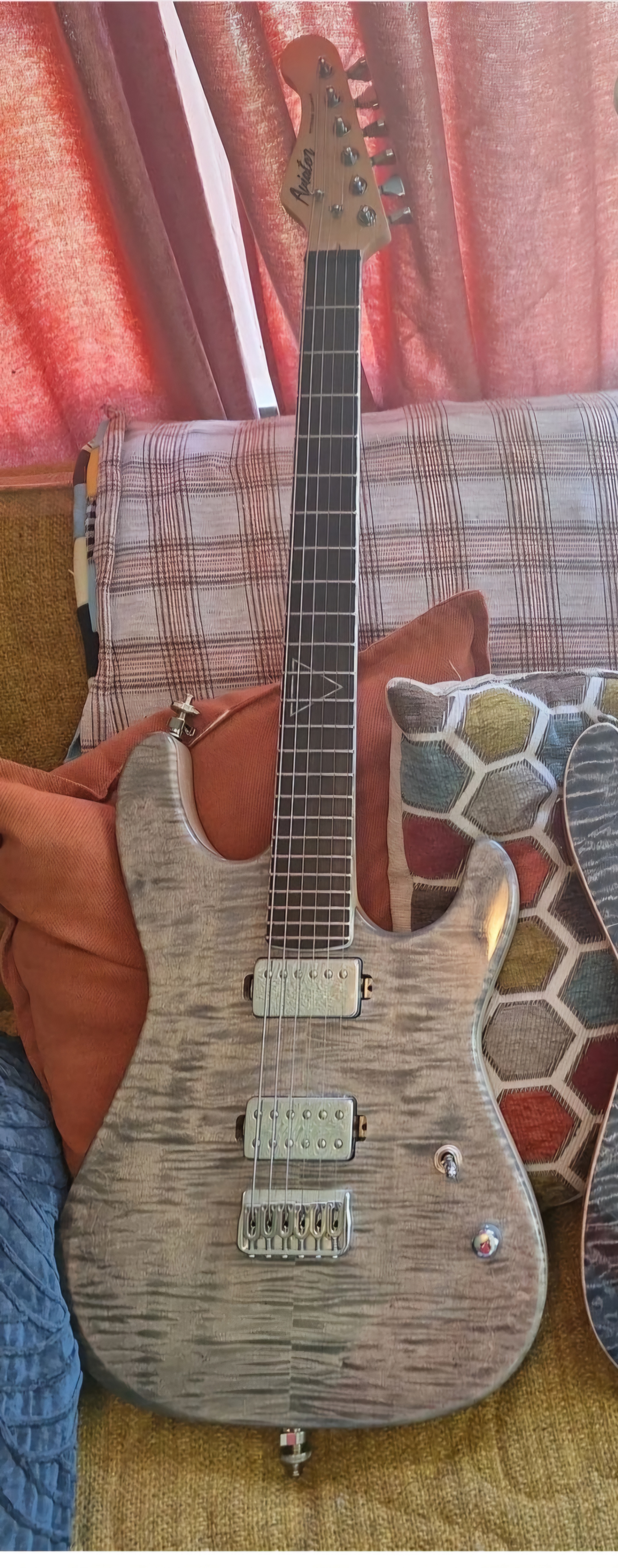 C ClintN667 Well-known member Sep 7, 2024 #1 1800 shipped lower 48 stat3s. Alder body, ss frets flame maple top bkp warpig in the bridge bkp emerald in neck locking tuners. Hipshot bridge. Neck is like a thin charvel. Hickox case. Attachments Screenshot_20240908_010727_Instagram.jpg 2.9 MB · Views: 189 Screenshot_20240908_010705_Instagram.jpg 510.6 KB · Views: 146