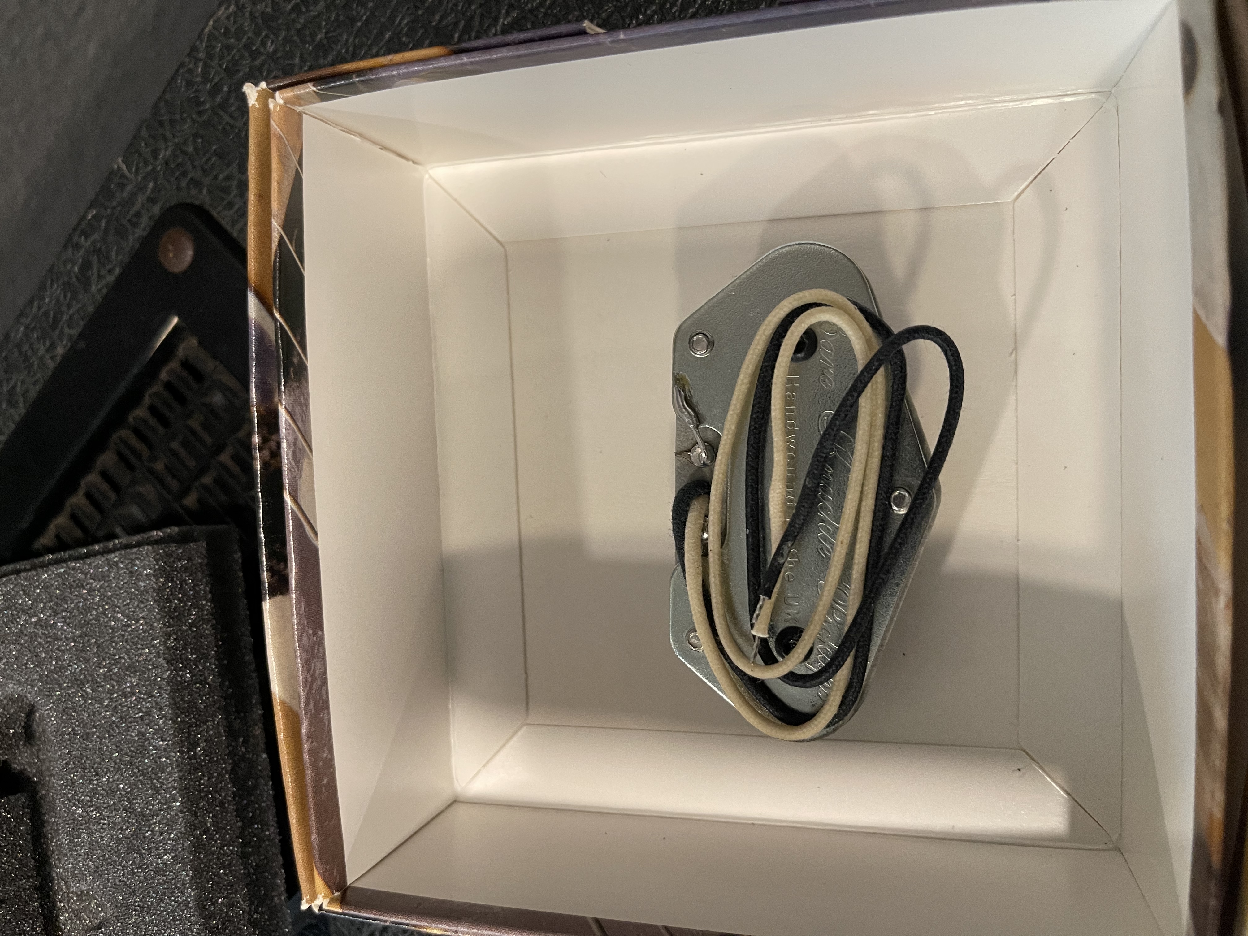 FondledDuck Well-known member Jun 6, 2023 #1 Killer high output tele bridge pickup 13.1k with Alnico V magnet. Absolutely brand new. Never used, bought for a project that never took place. $100 shipped ppg. Attachments 872A8034-6340-4F58-A868-A399DF05E470.jpeg 4 MB · Views: 80 B0AFDB7A-20FE-4D9B-94B7-0A88AB2CC9BC.jpeg 3.6 MB · Views: 76