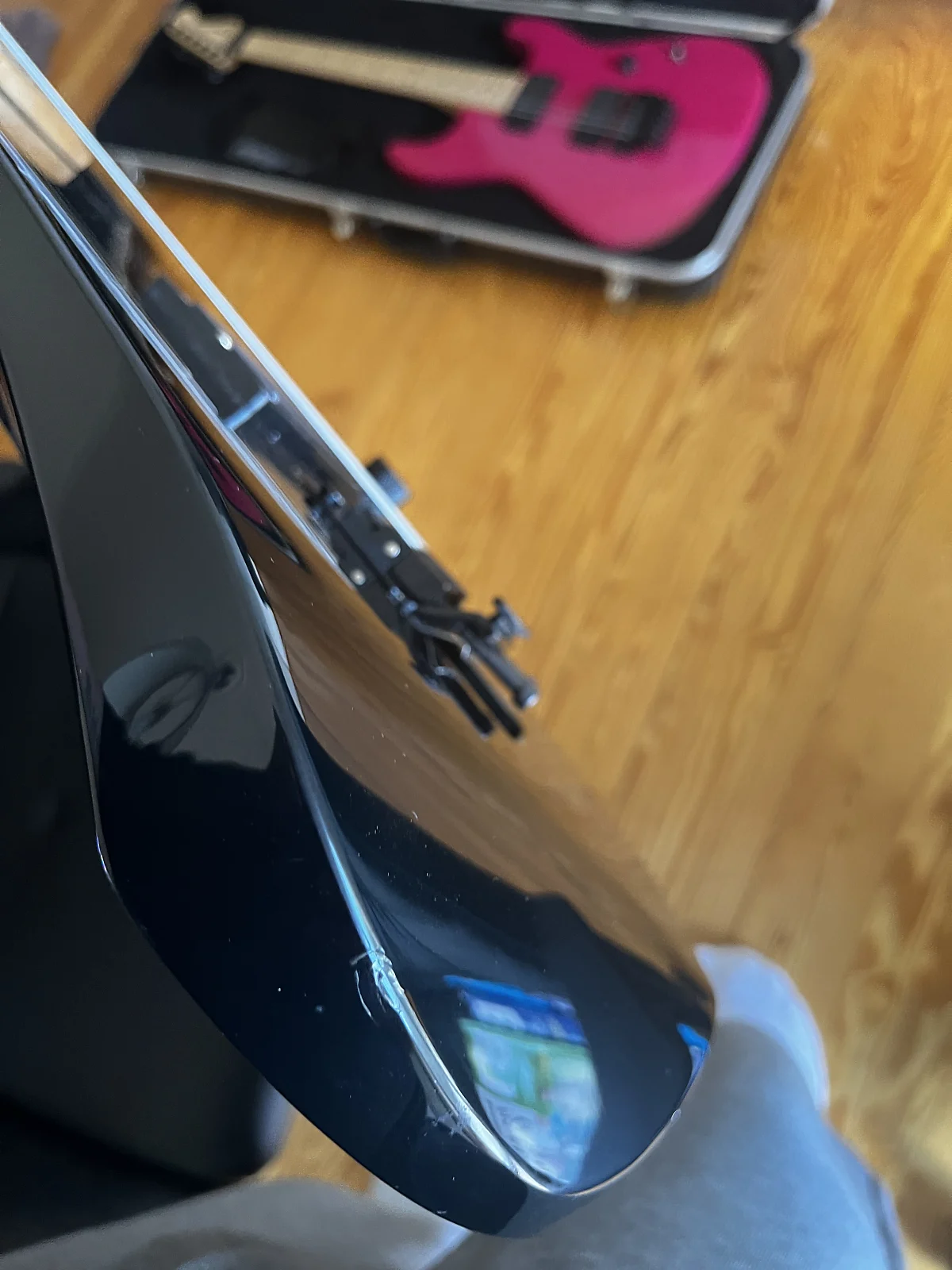 Small ding on the body (check photo) and some small signs on the neck which don't affect playability of course (check photo)