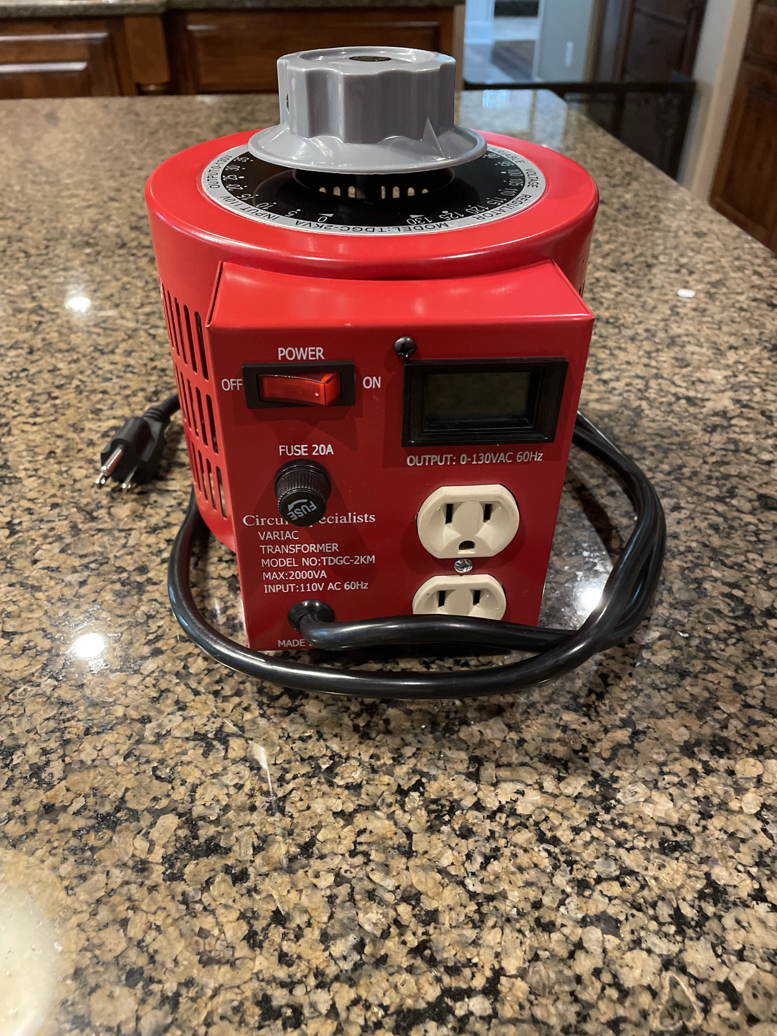 A very good, life long friend of mine has been touring with a major band for a long time and recently had a break from dates due to the recent DELTA surge and large venue shows being cancelled. So he came by last week for an afternoon of strong drinks and loud amps. He brought some killer heads and his trusty Amp Rx Brown Box. I was stunned at what a difference it makes to knock the wall voltage down to an even, steady 110. Maybe for a non-MV amp where all of your gain and compression is coming out of the power tubes, you really need to go down to 90 volts. But for an amp with a good sounding MV, limiting the wall voltage to 110 is just incredible. (Voltage at my house was around 122-123 out of the socket.). Lead lines just sing, pick attack is smooth and articulate, the amp reacts like is WANTS you to sound incredible! I imagine this is what people are talking about when they say how much ‘feel’ Cameron amps provide. So, I ordered a 20 Amp Variac from Circuit Specialists: