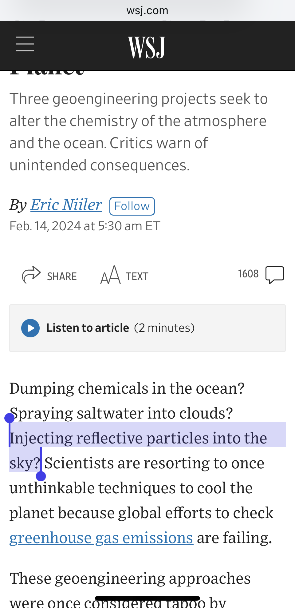Because one camp of climate crazies are contradicting another. I’m sure they’ll carve out an exception though for fellow scientists trying to save us by polluting the atmosphere.why did you post it then?
