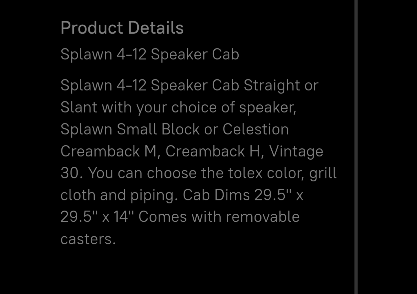 Yep. Stage craft site.Stage Craft site? Makes no sense. He told me they don't make any that big. Nothing bigger than the 412 cabs on their site.