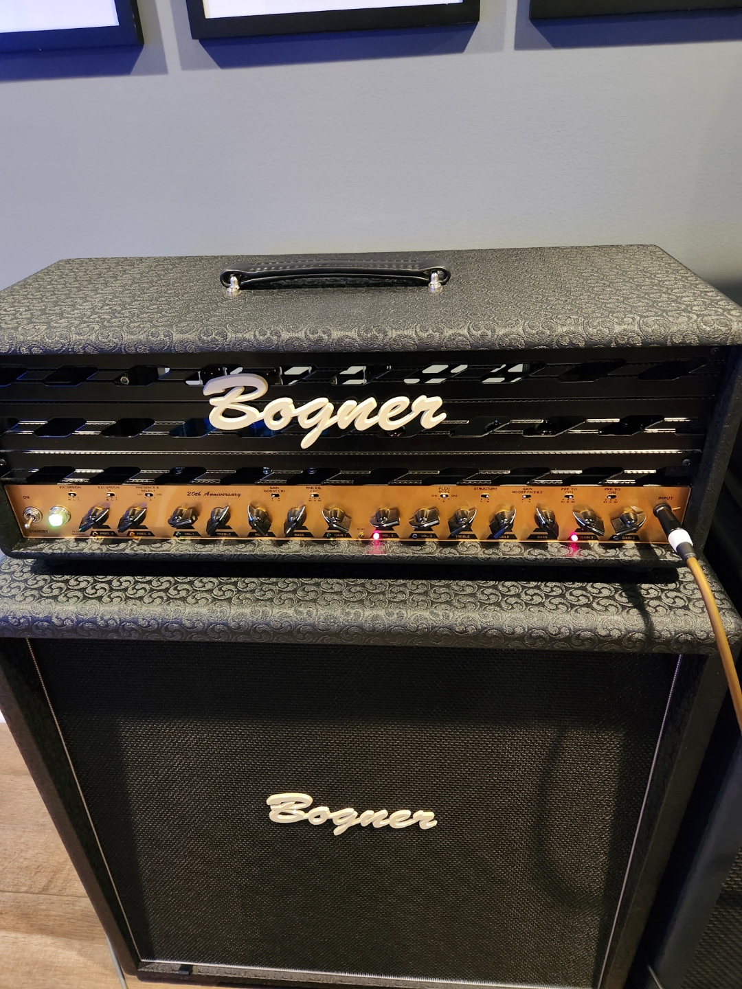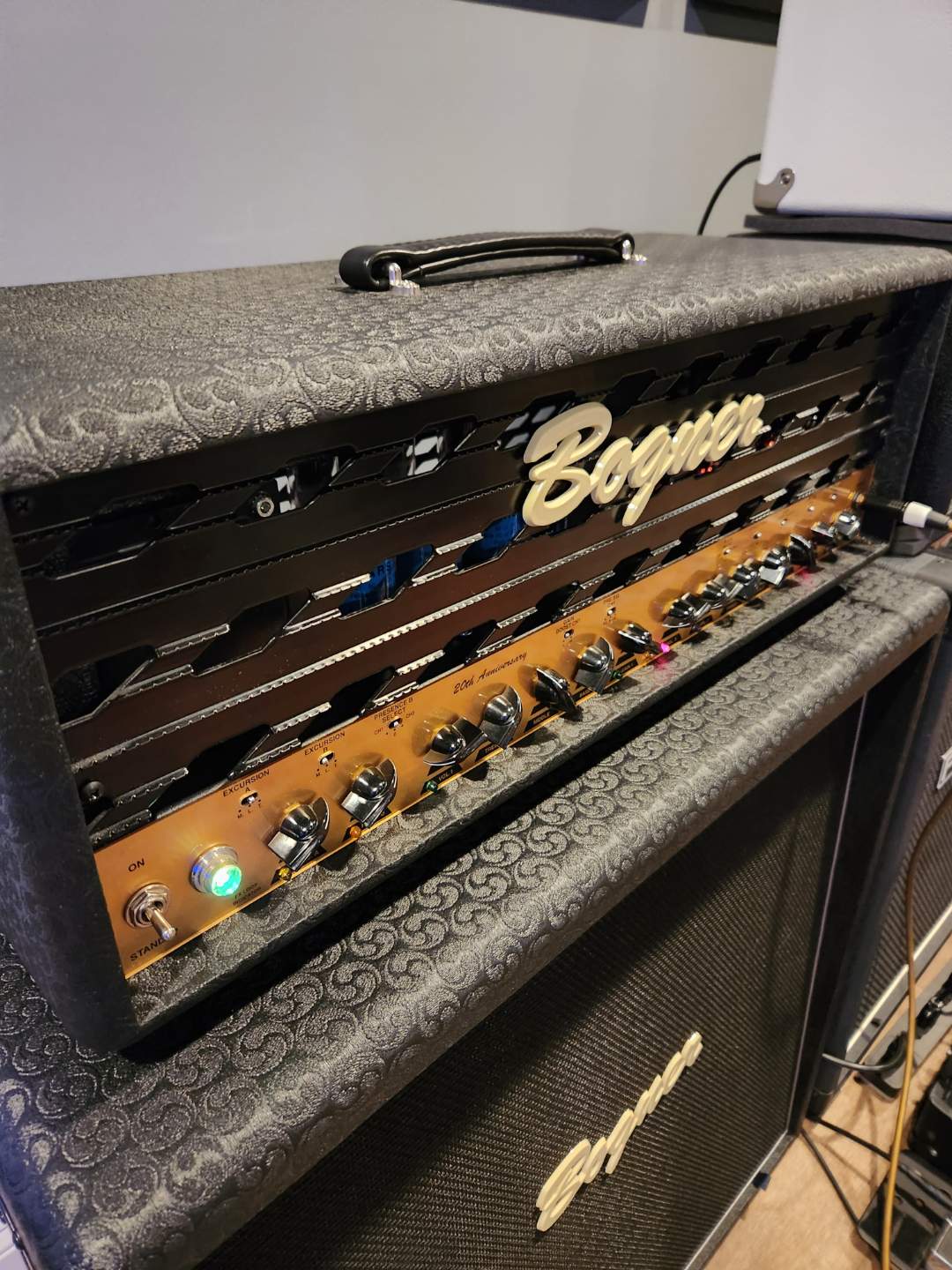 Bogner 20th Anniversary XTC with EL34's , upgraded metal face grill , and class A/ AB option . Amp is in prefect condition with one small mark near the input jack that was already there when it arrived as you will see in the picture. It is smooth to the touch so it must be on the inside of the panel .The mark on the panel is solid and other than that everything is mint.