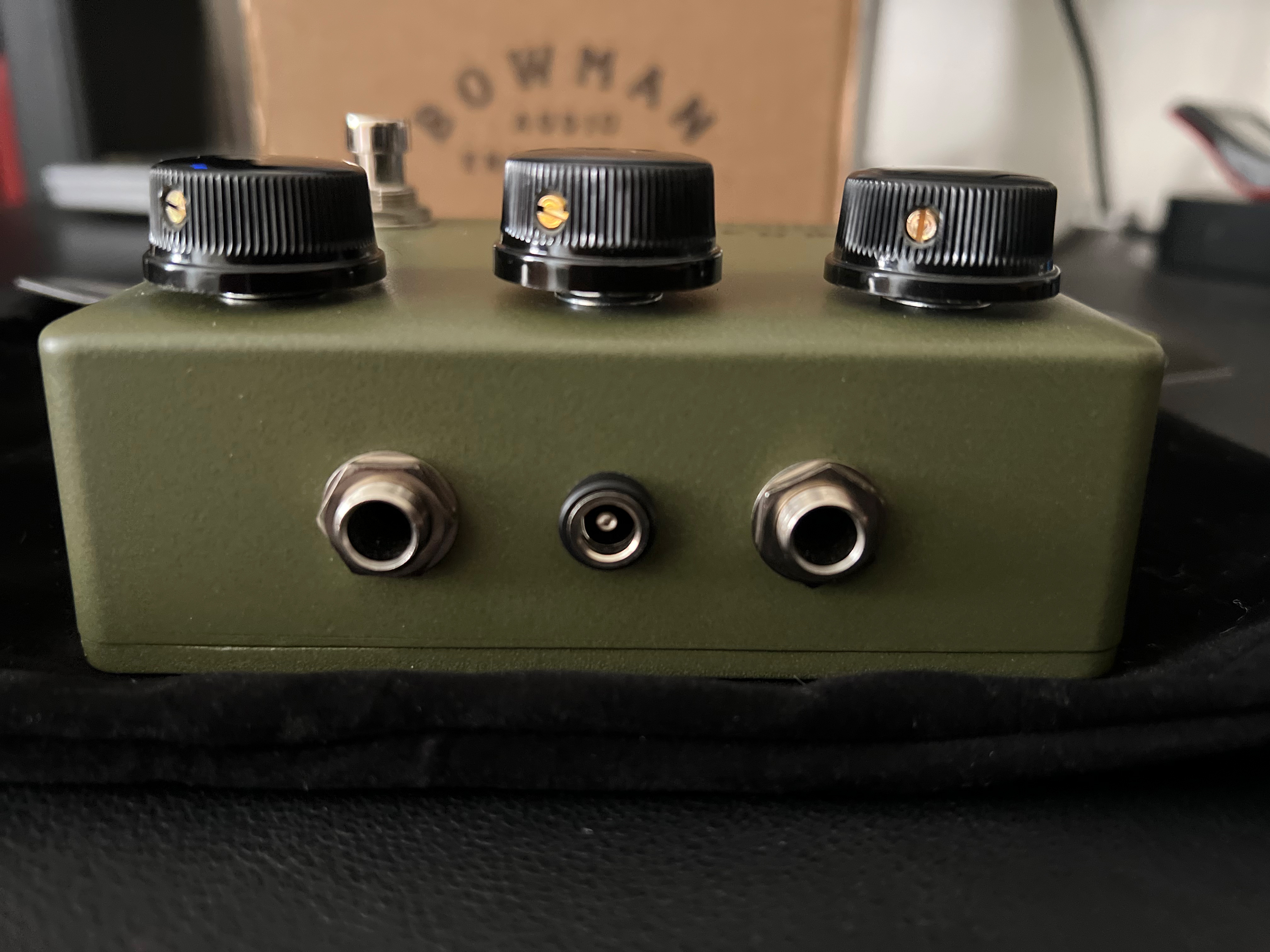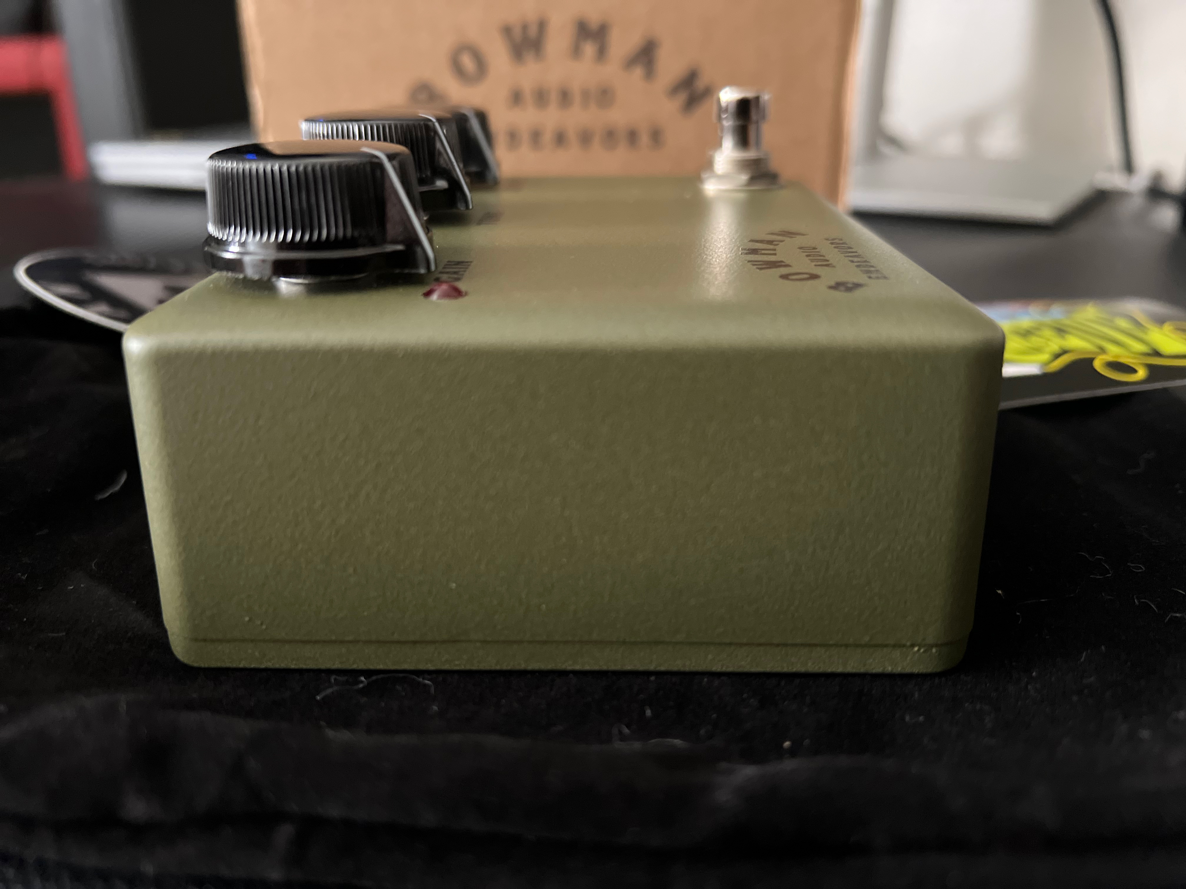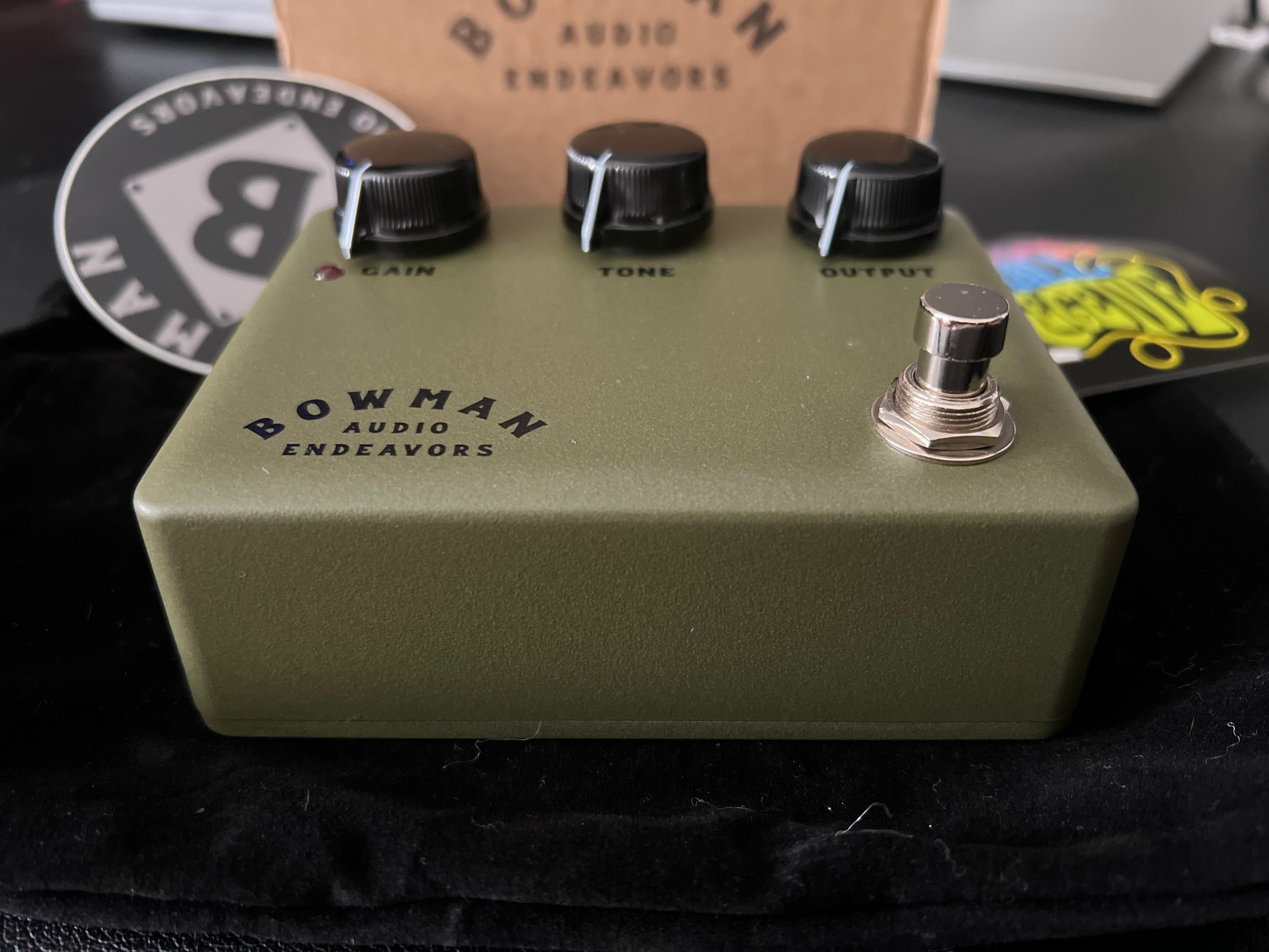 For sale is a near mint Bowman Audio Endeavors Overdrive pedal in olive drab. Comes with original box, felt bag and case candy, $ 175.00 shipped and P/P