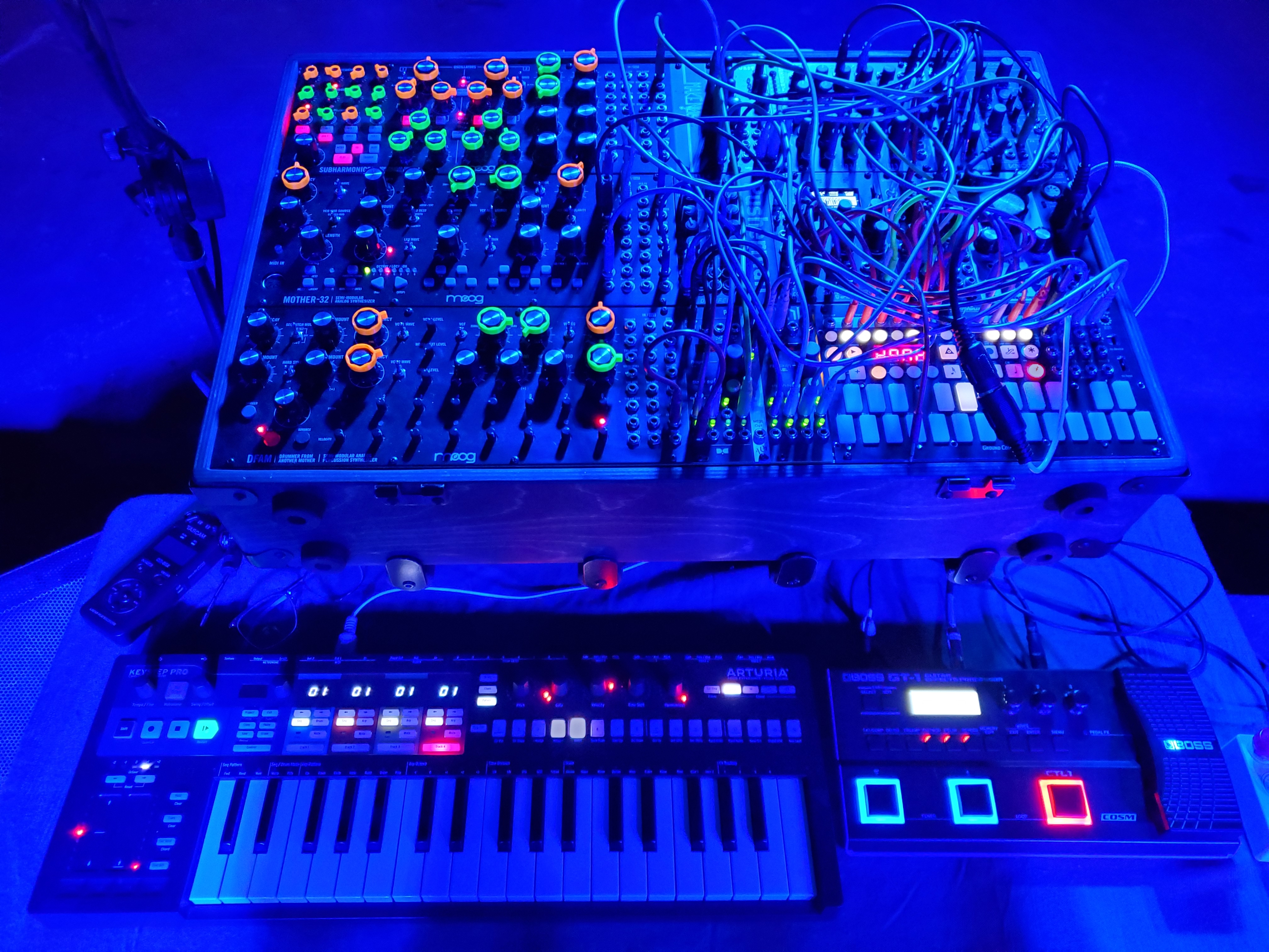 With the cold weather and whatnot, it takes the synth out of tune. So not only is he doing all the sweet spacey modulation and filter sweeps, but he's tuning it while we're playing so that the notes are correct. That dude is a wizard.